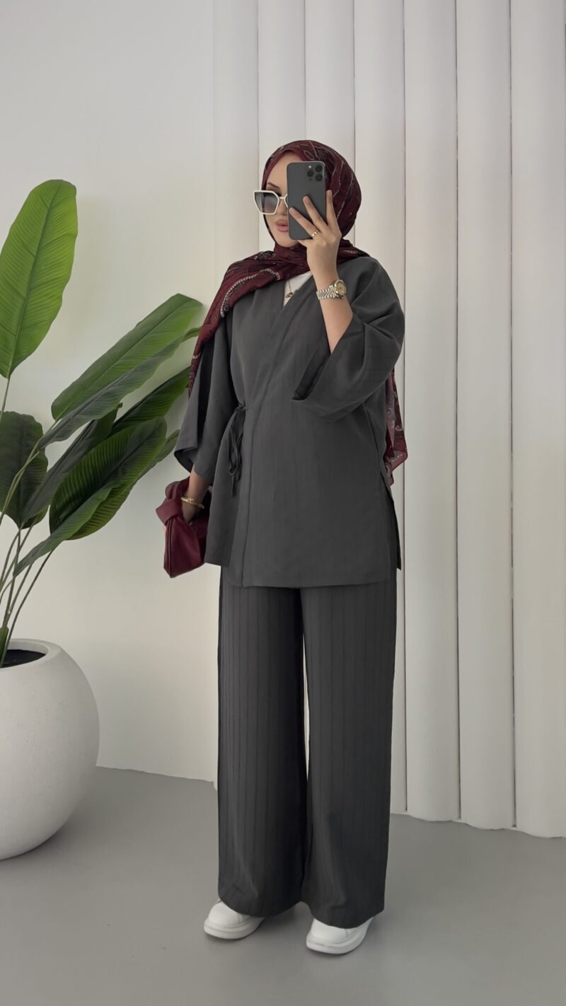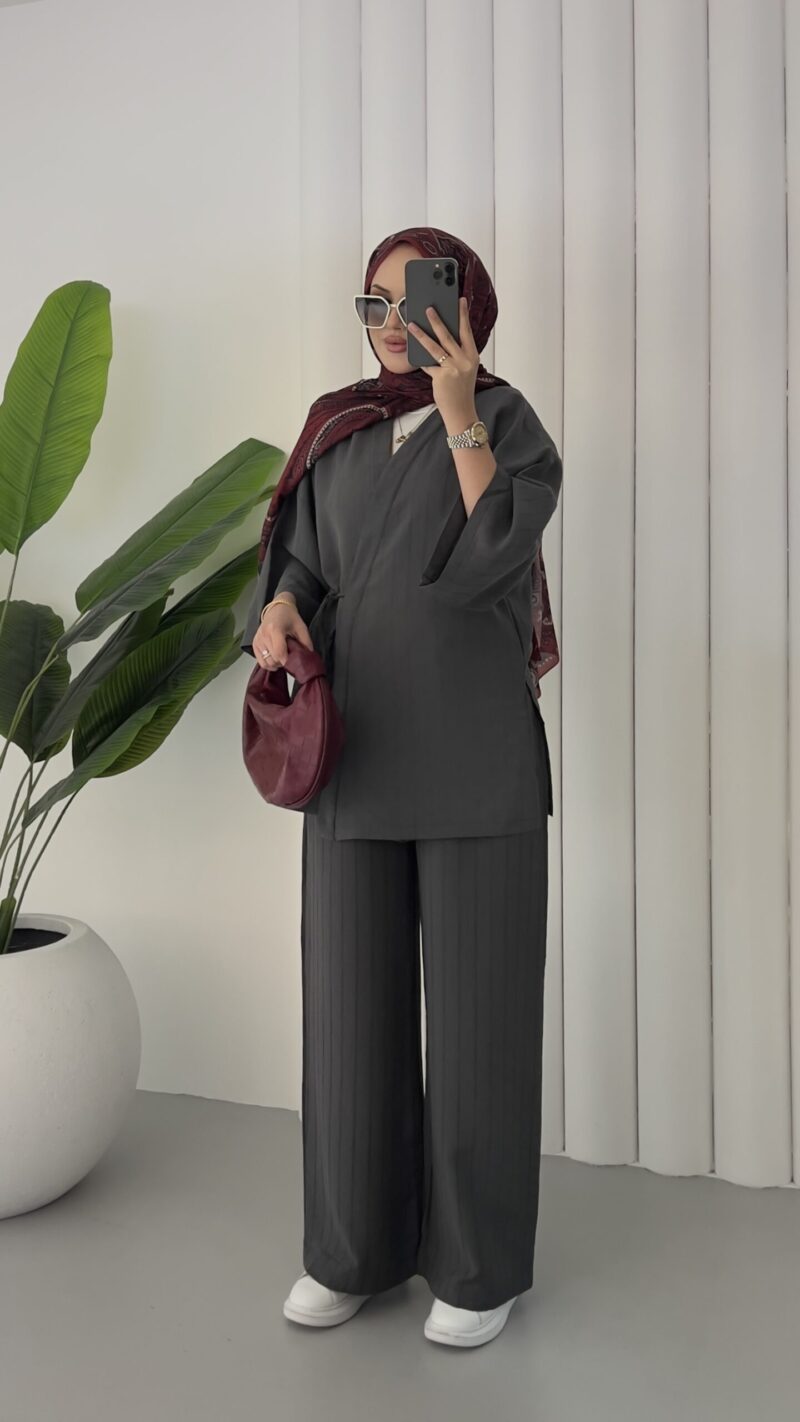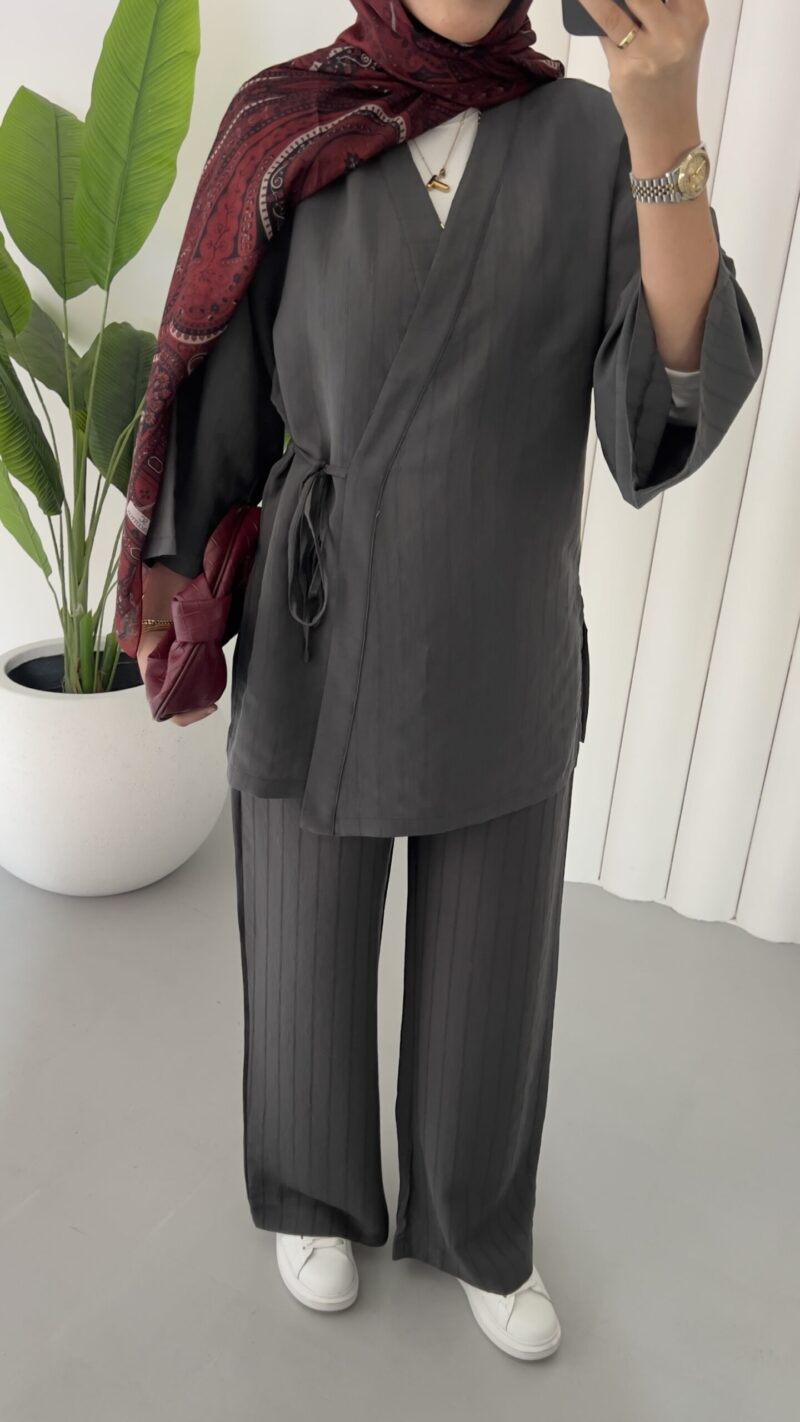 Angel Premium Çizgili Tensel Takım – Antrasit