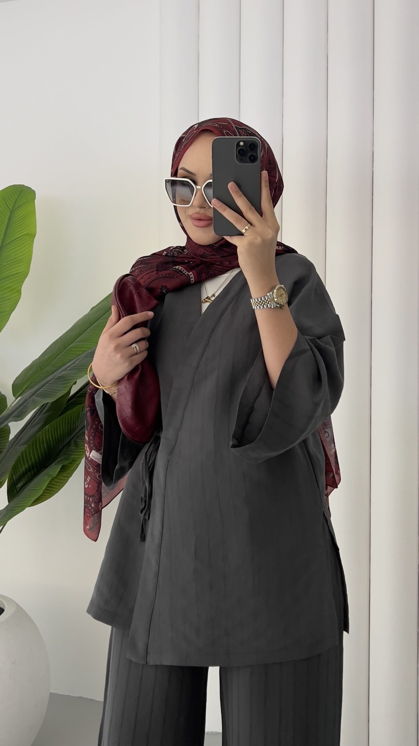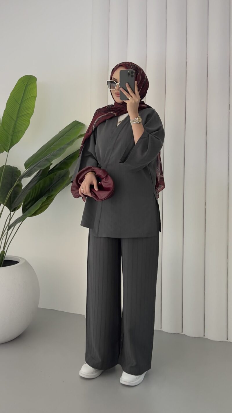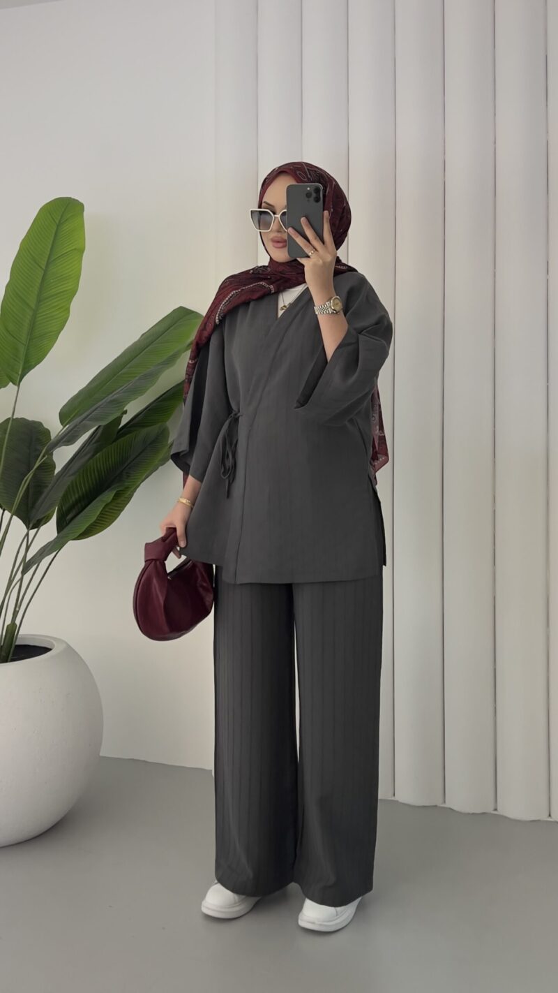 Angel Premium Çizgili Tensel Takım – Antrasit