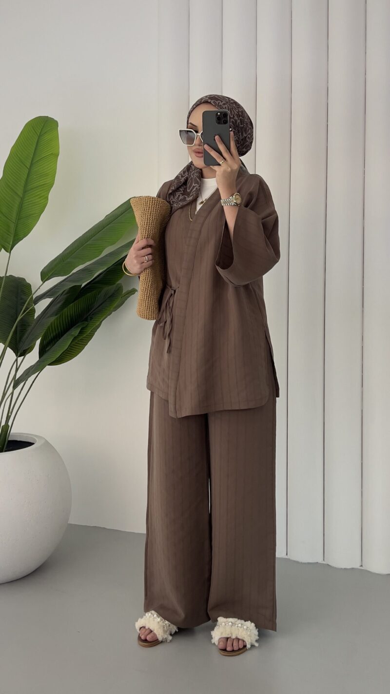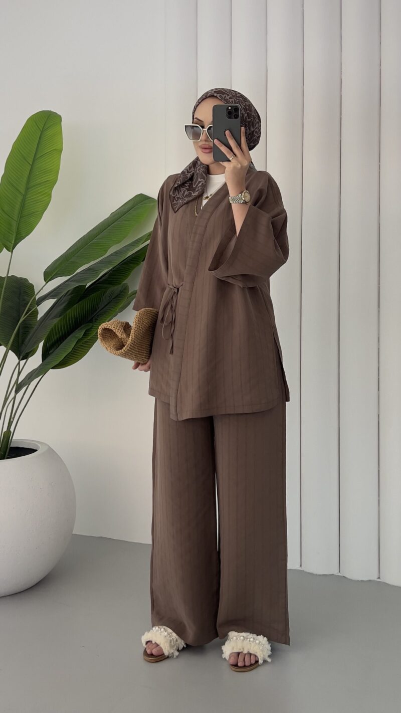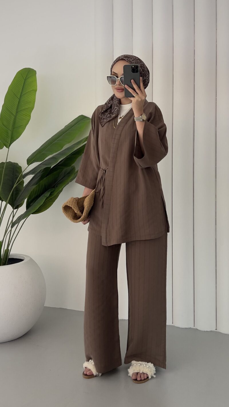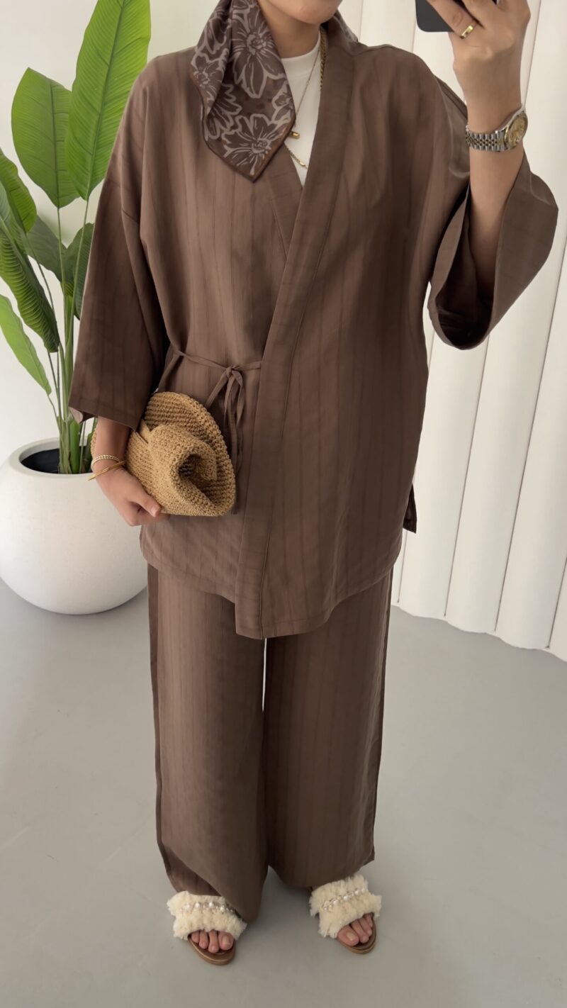 Angel Premium Çizgili Tensel Takım – Kahverengi