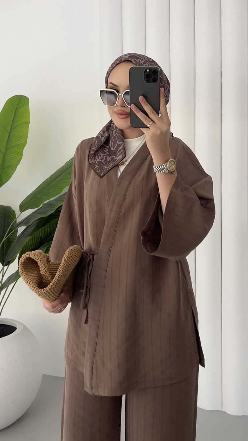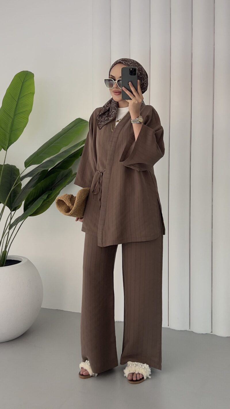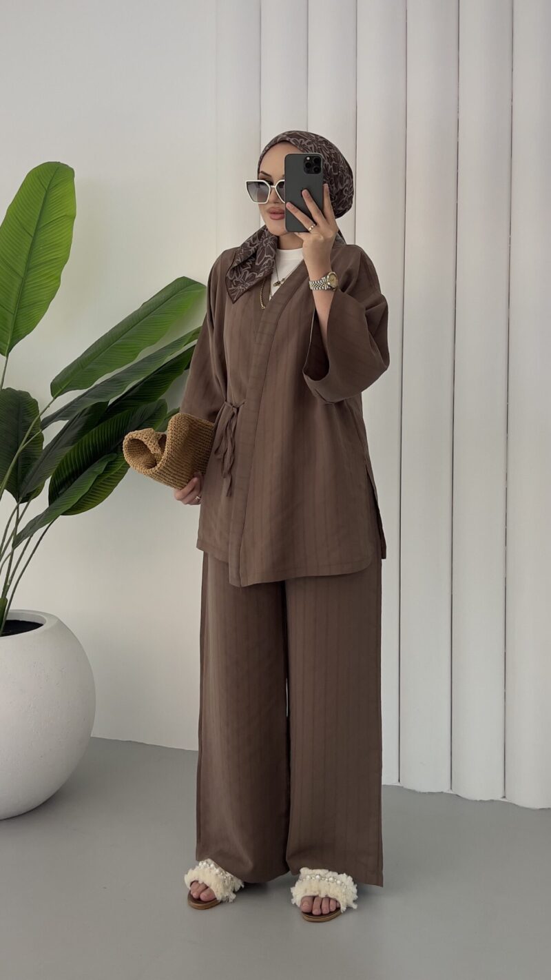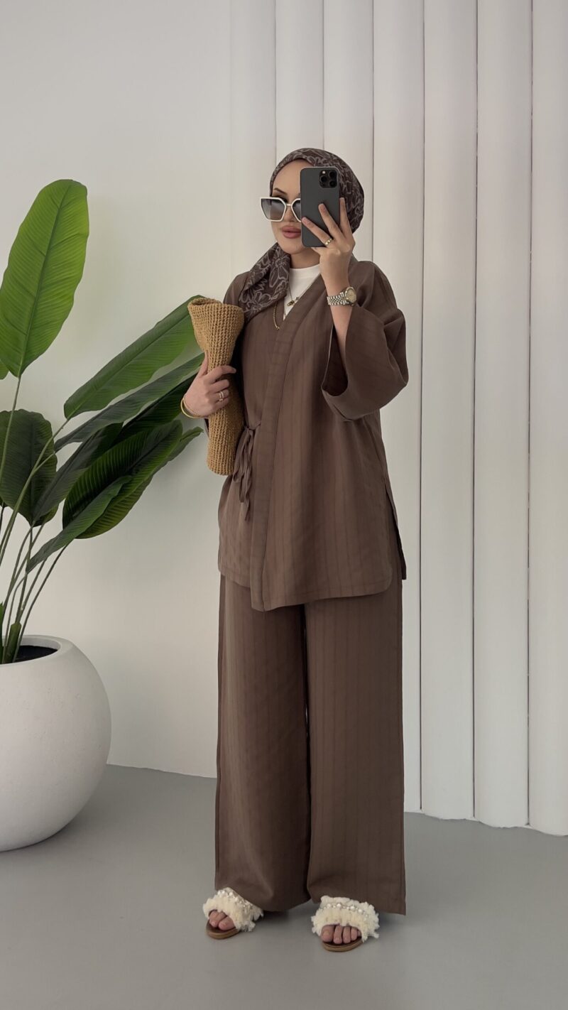 Angel Premium Çizgili Tensel Takım – Kahverengi