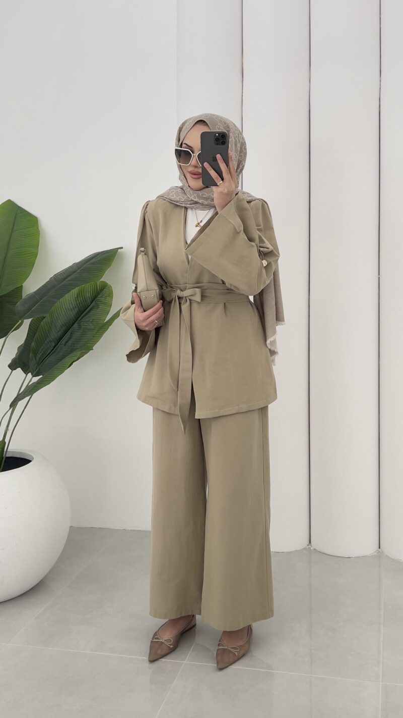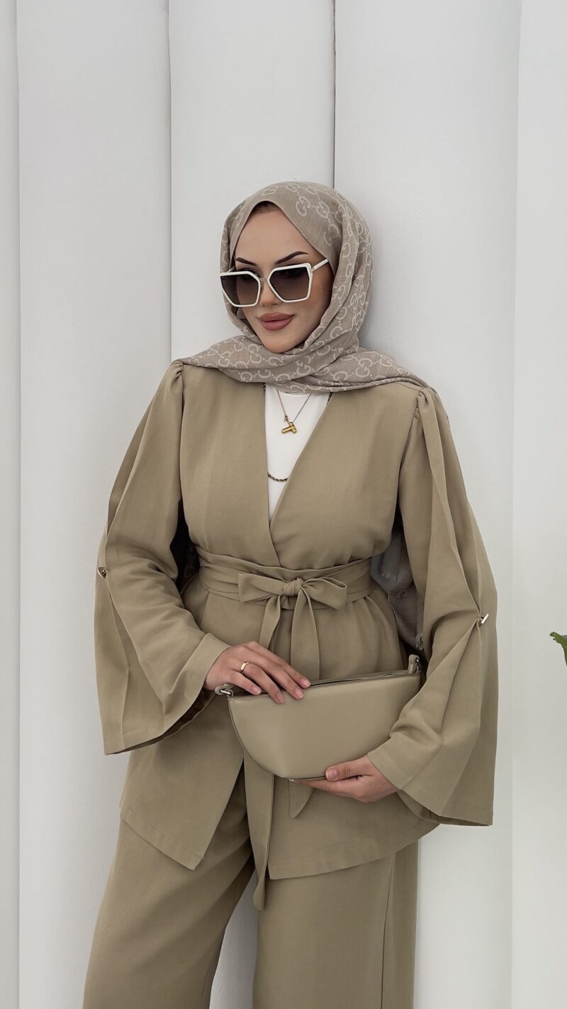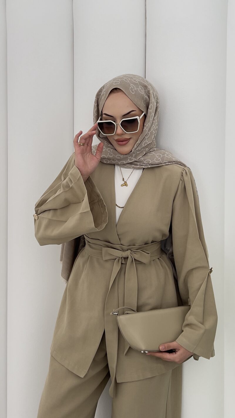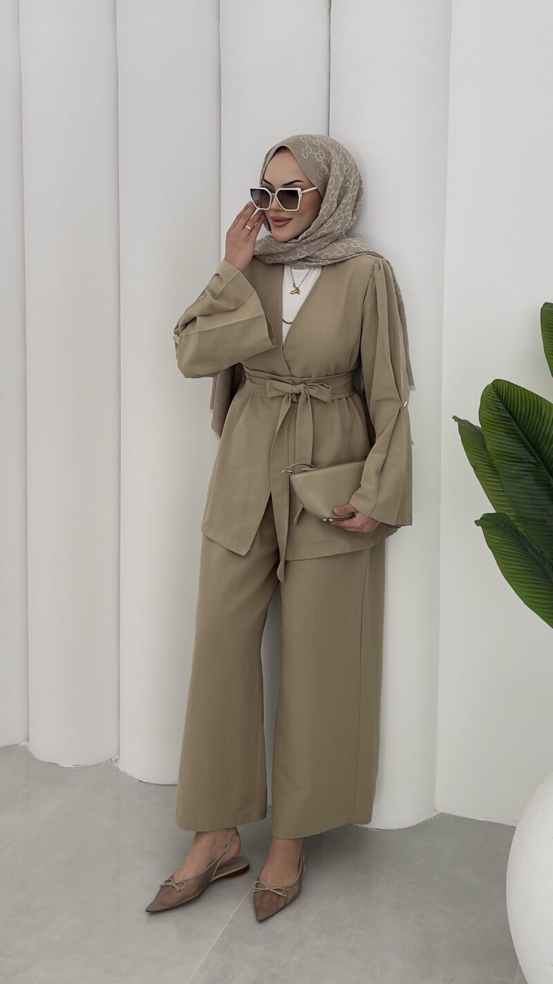 Haris Premium Keten İkili Takım-Yağ Yeşili