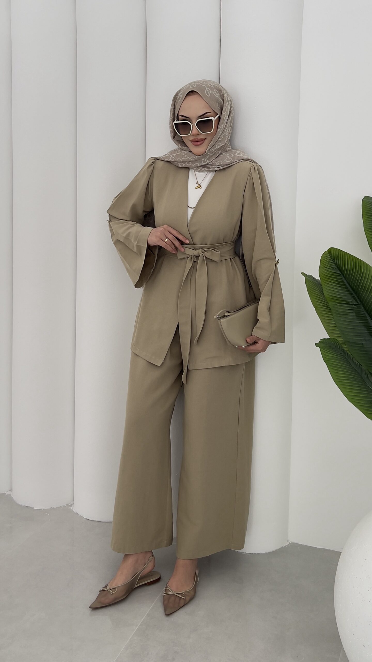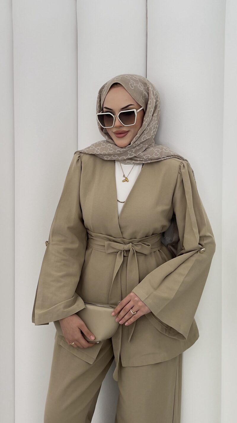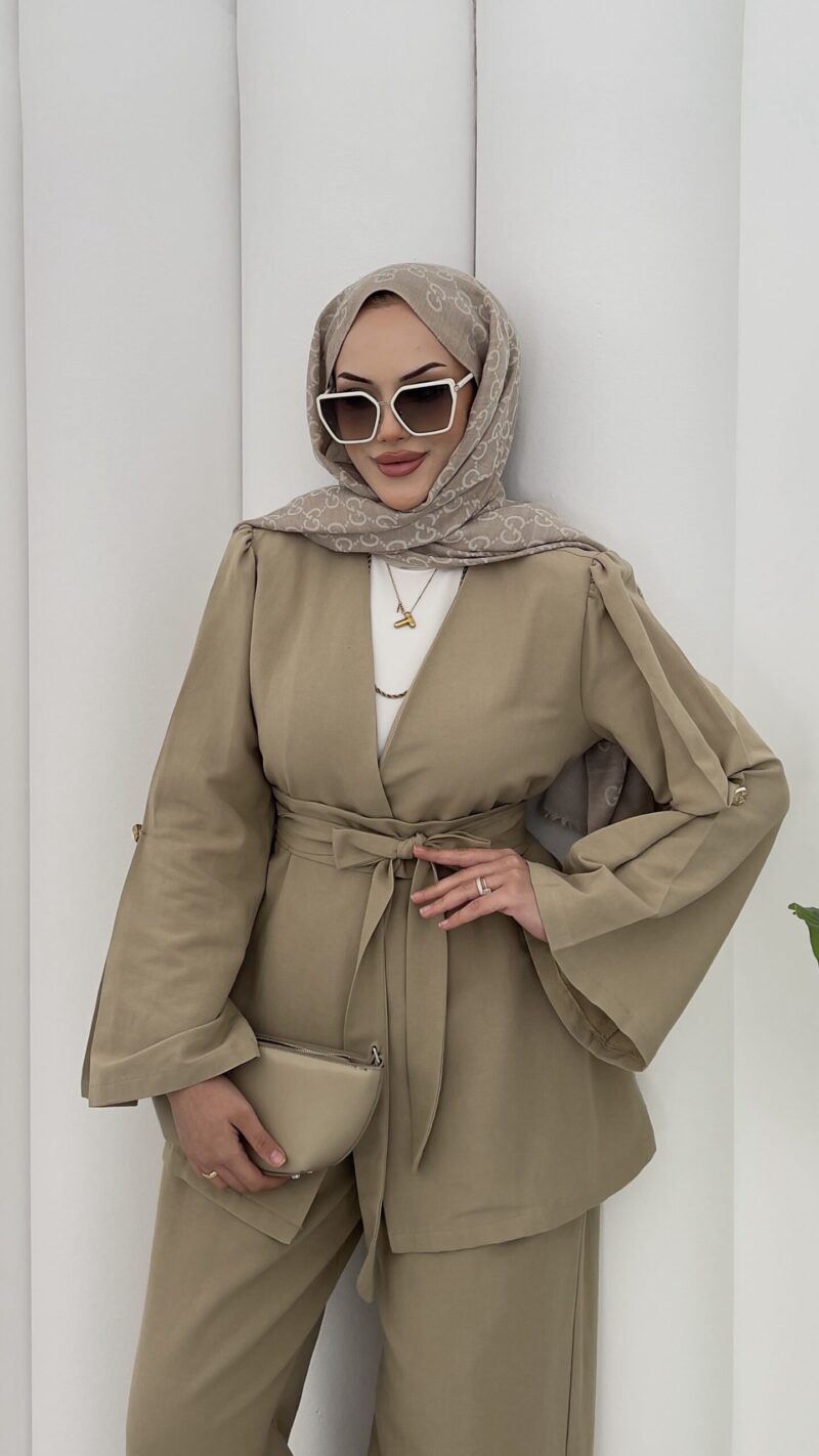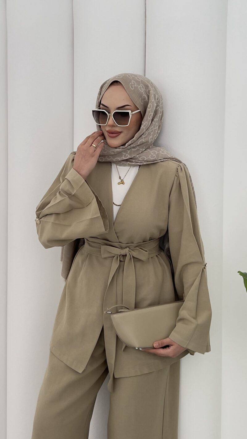 Haris Premium Keten İkili Takım-Yağ Yeşili