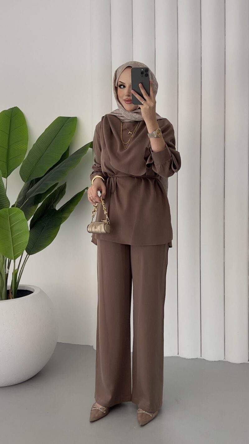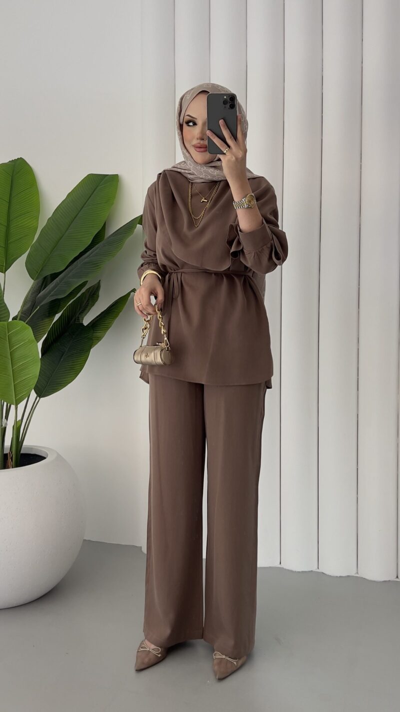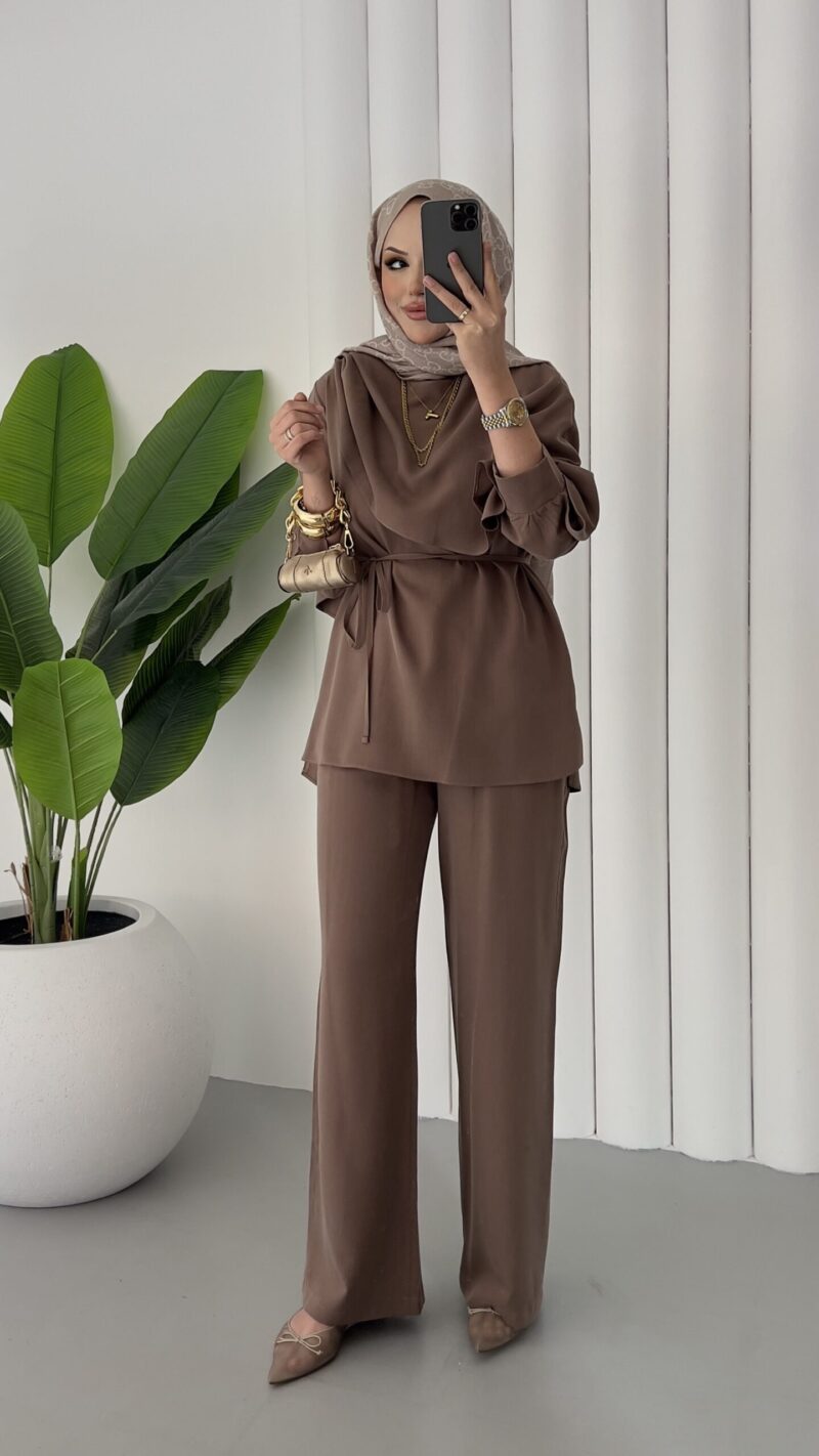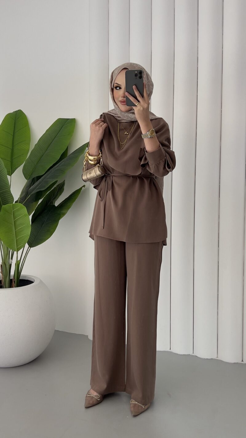 Hawai Şal Yaka İkili Takım – Kahverengi