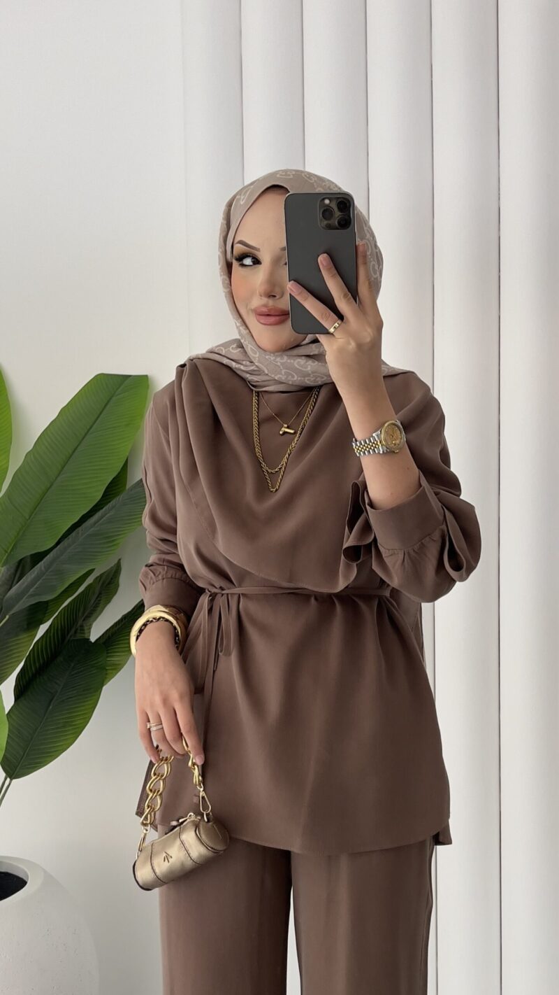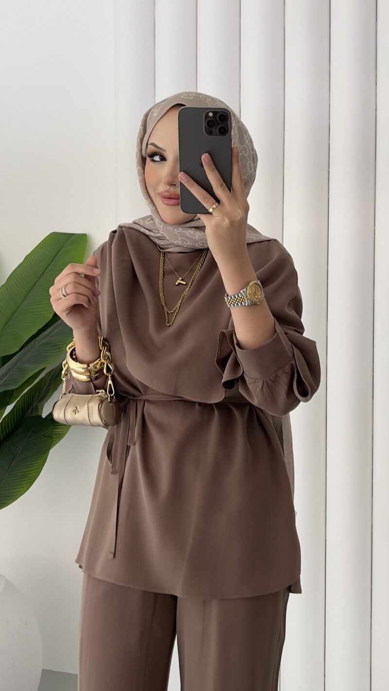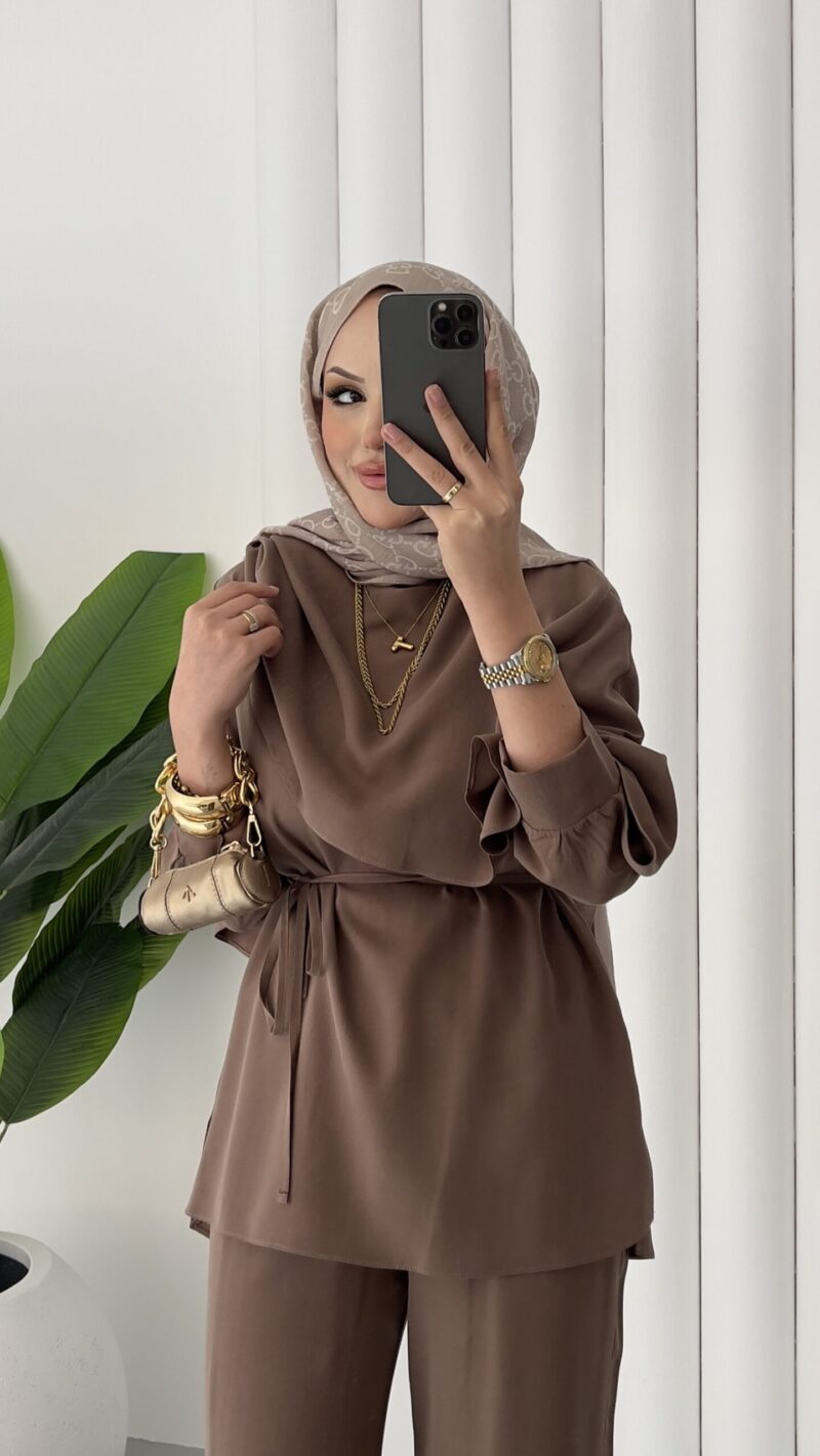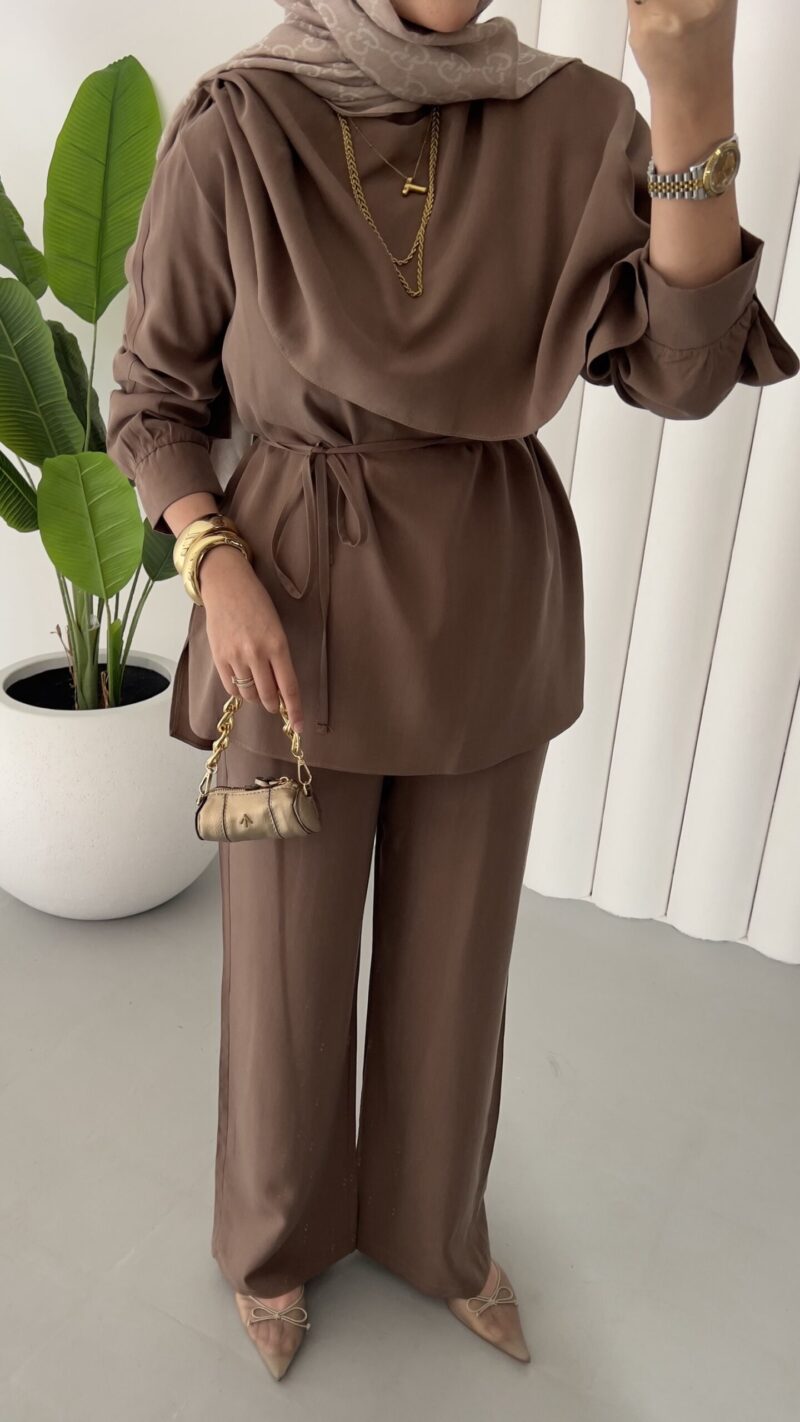Hawai Şal Yaka İkili Takım – Kahverengi