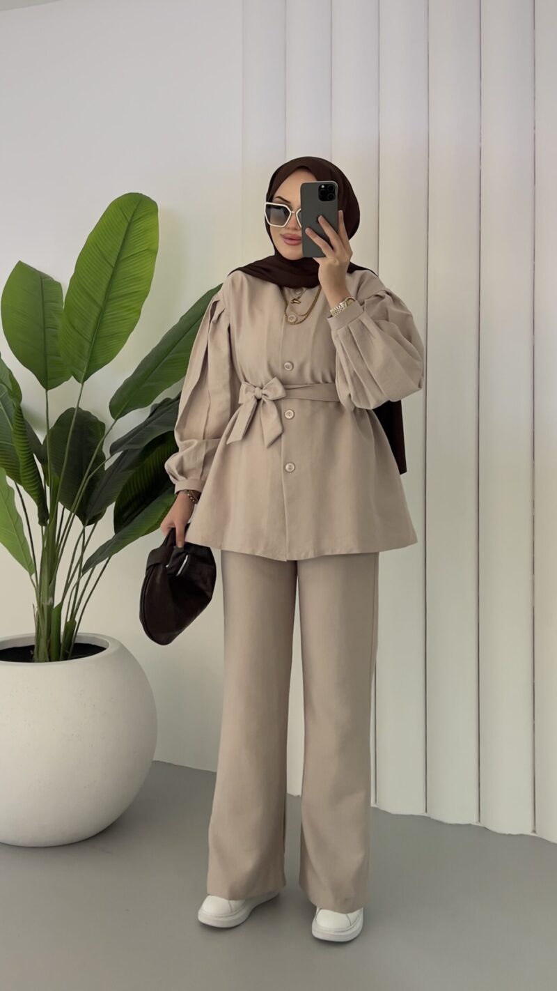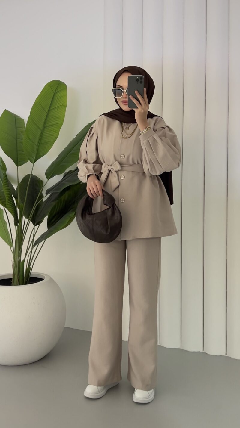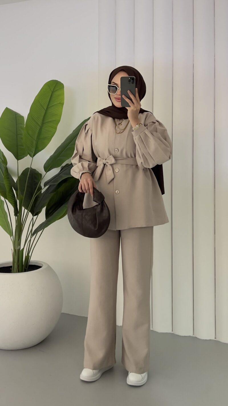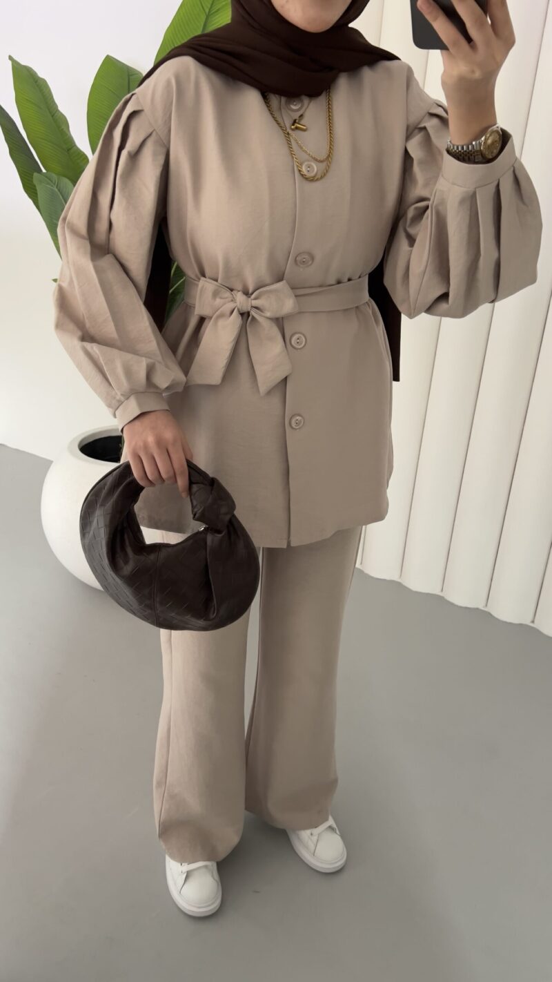 Lidya Balon Kol İkili Takım – Bej