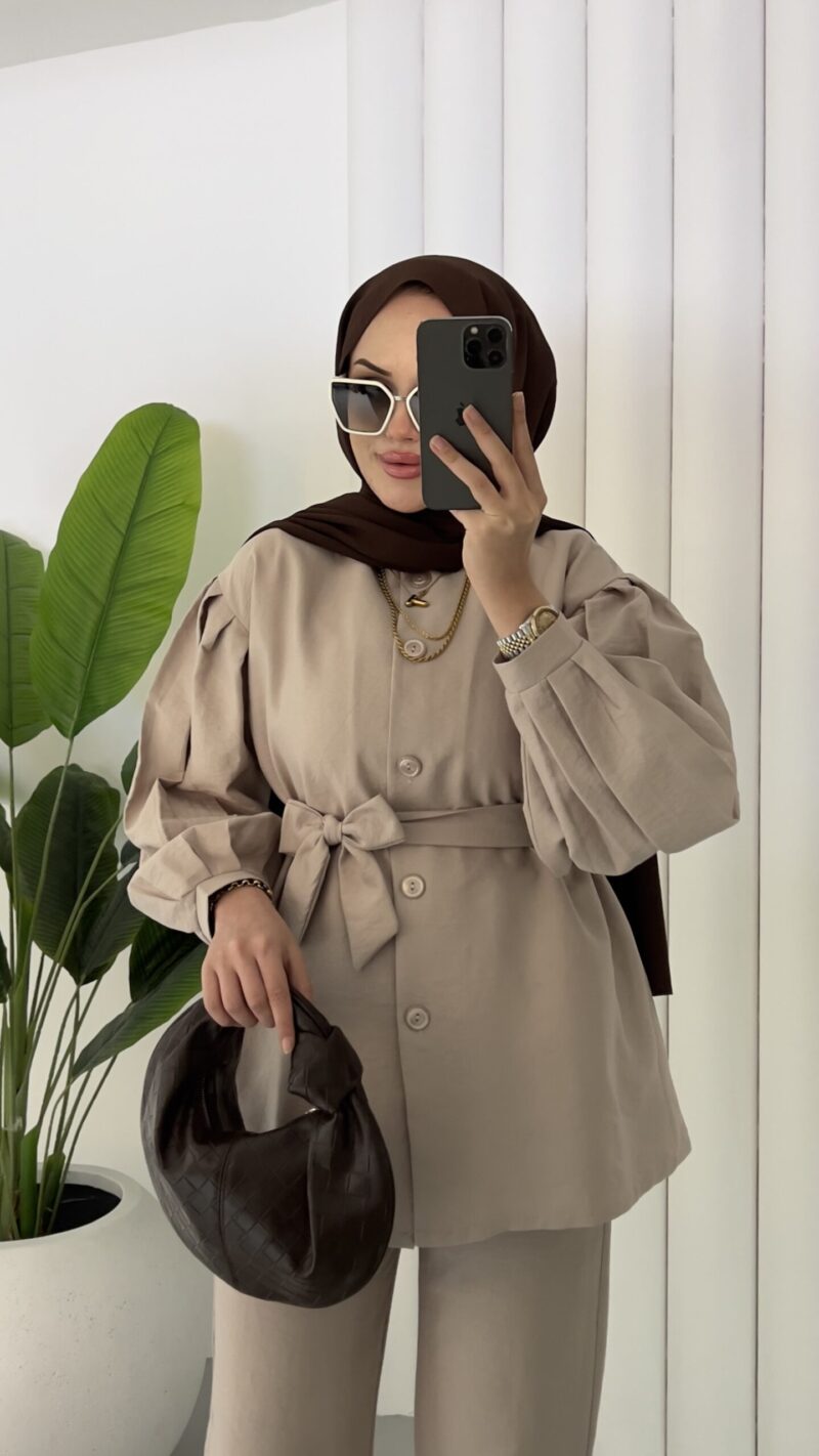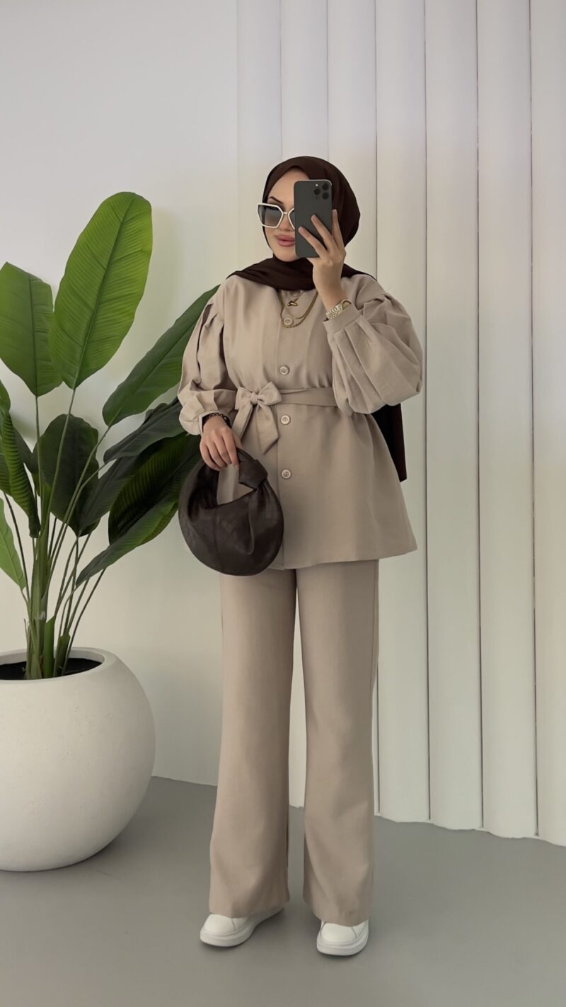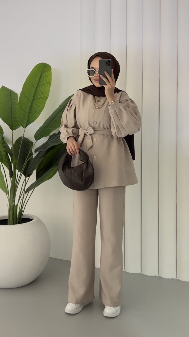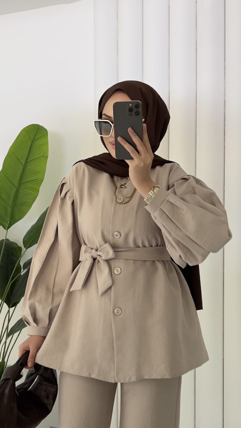 Lidya Balon Kol İkili Takım – Bej