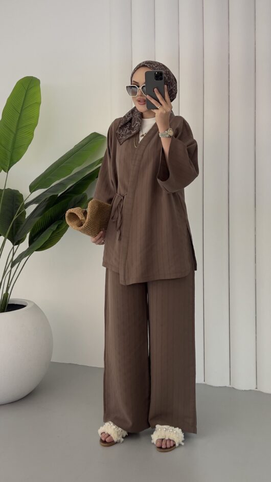 Muadil Ayıcık Nakışlı Triko İkli Takım – Kahverengi
