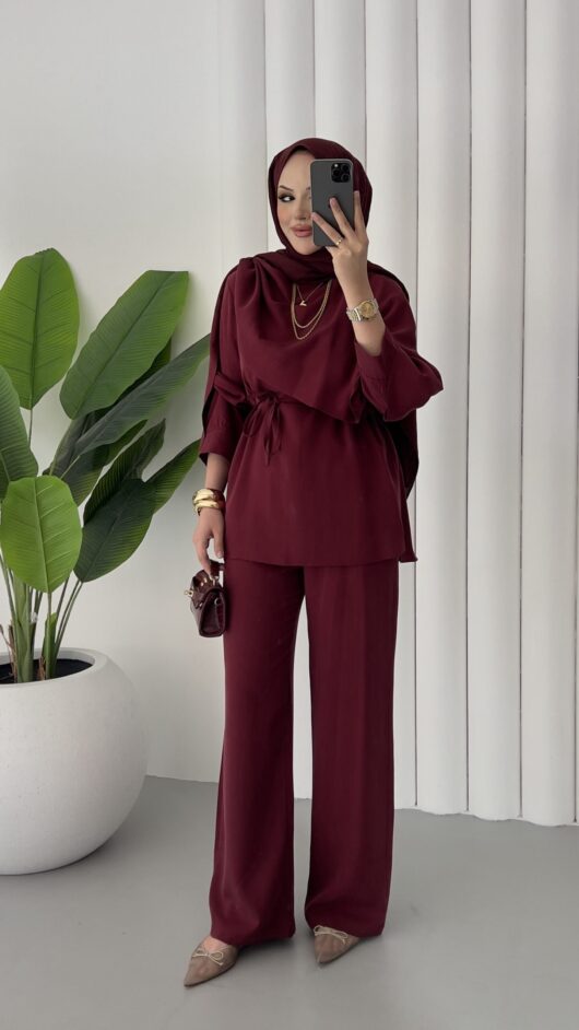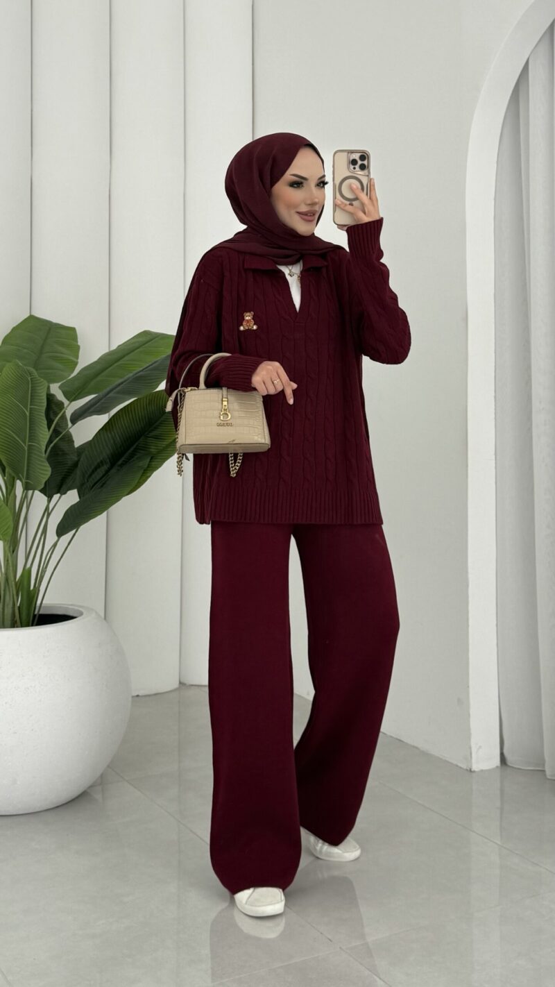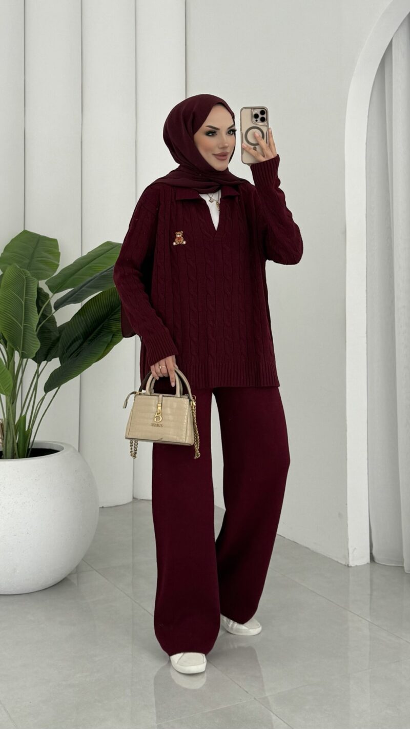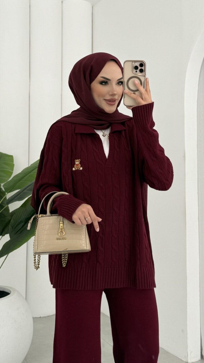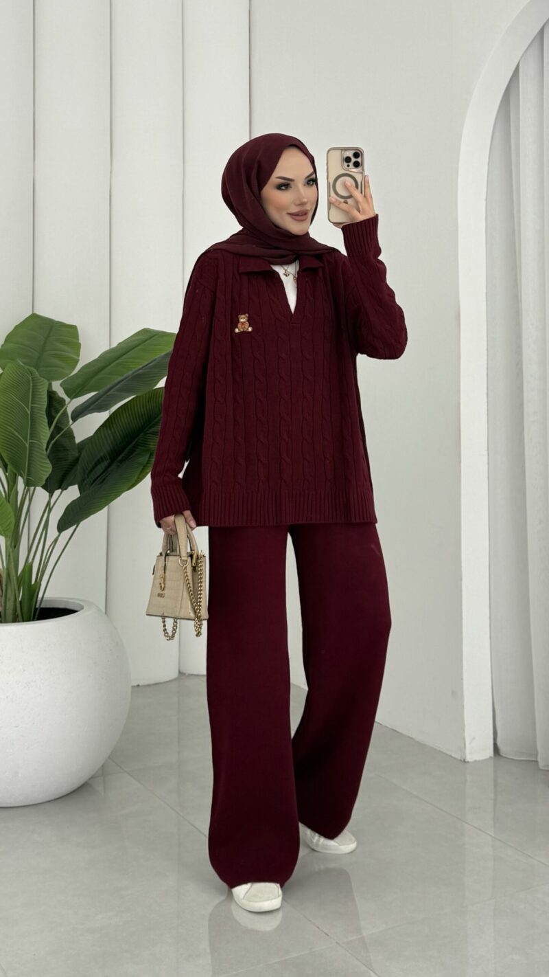 Muadil Ayıcık Nakışlı Triko İkli Takım – Bordo