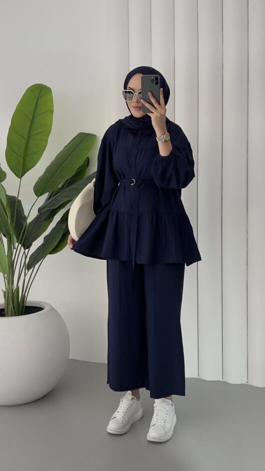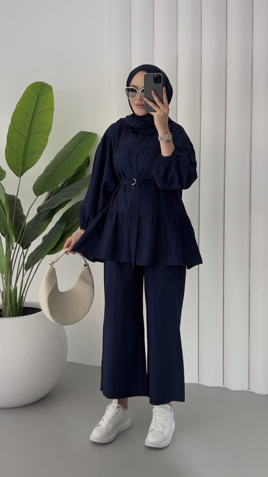 Luxury Kürklü Denim İkili Takım – Açık Mavi