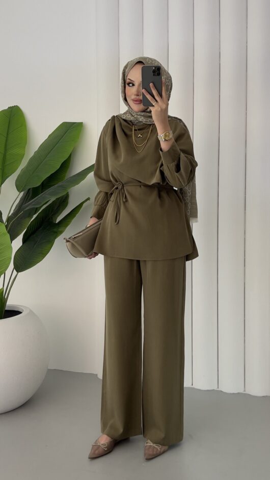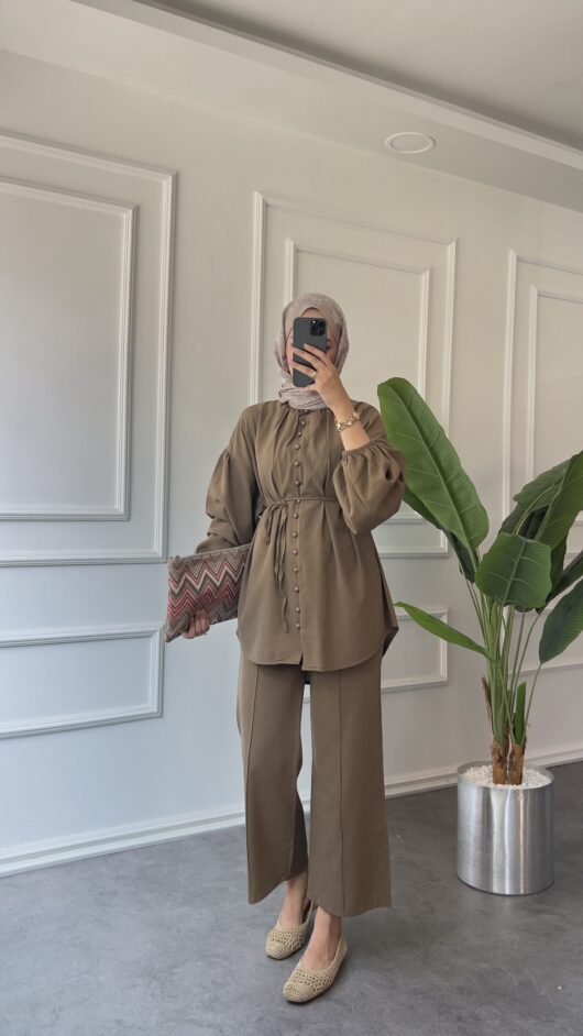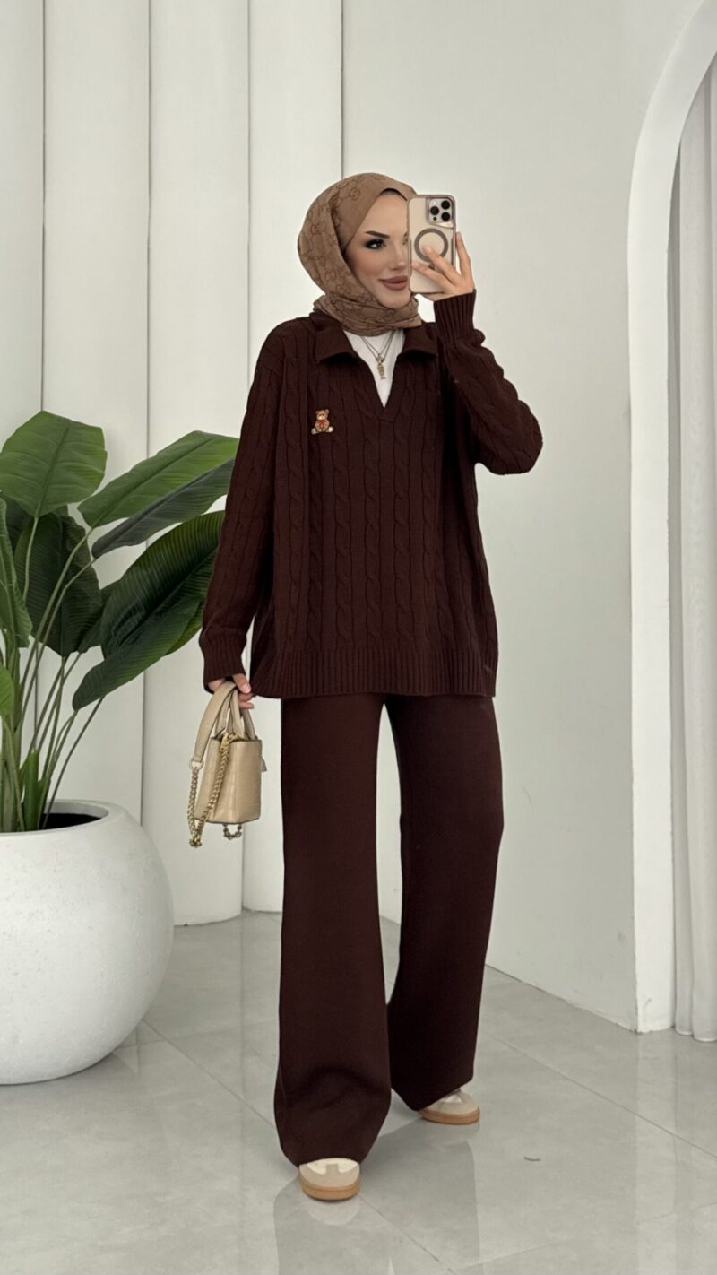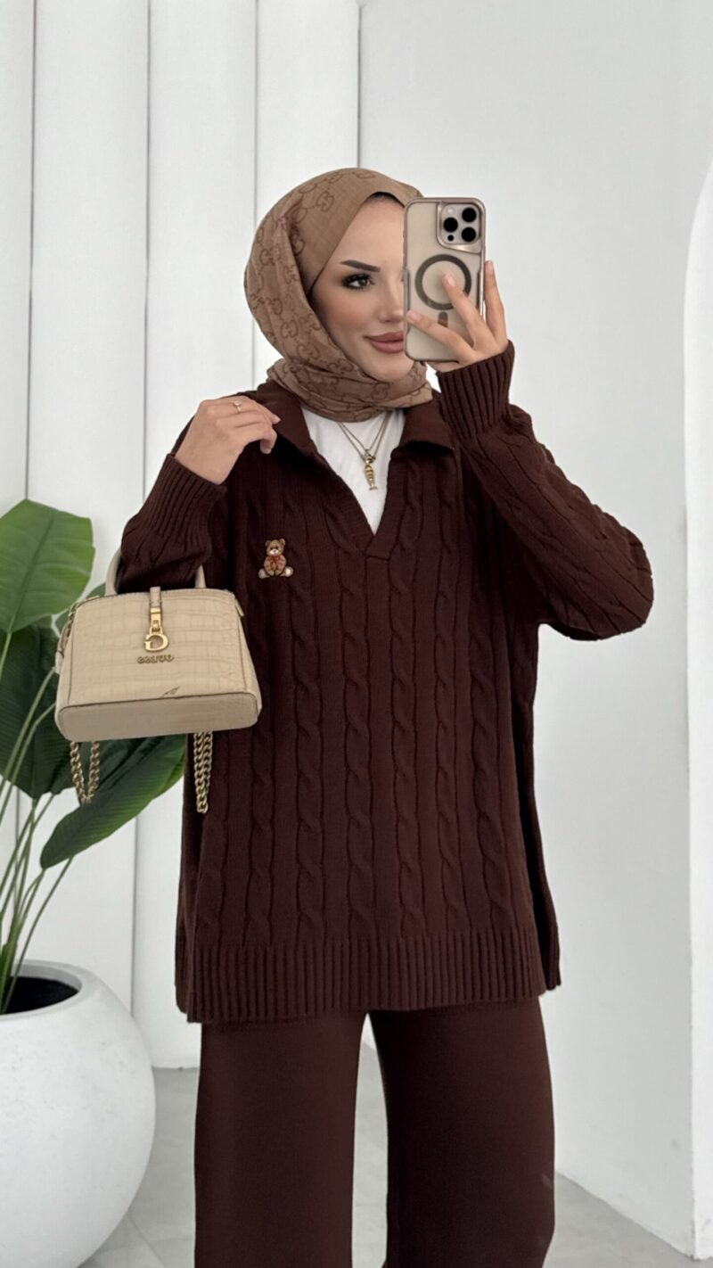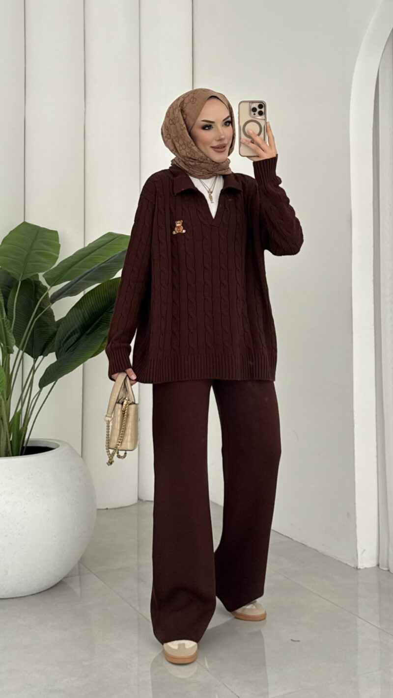 Muadil Ayıcık Nakışlı Triko İkli Takım – Kahverengi