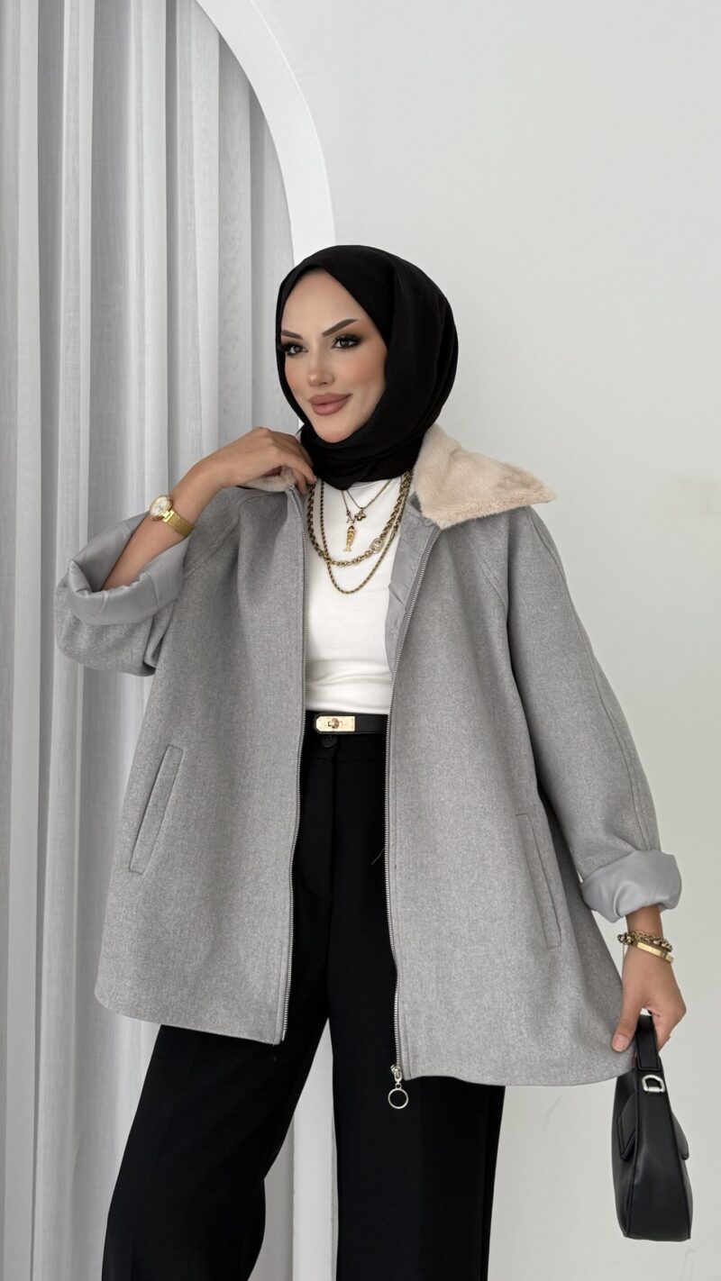 Muadil Kürk Yaka Kaşe Ceket – Gri