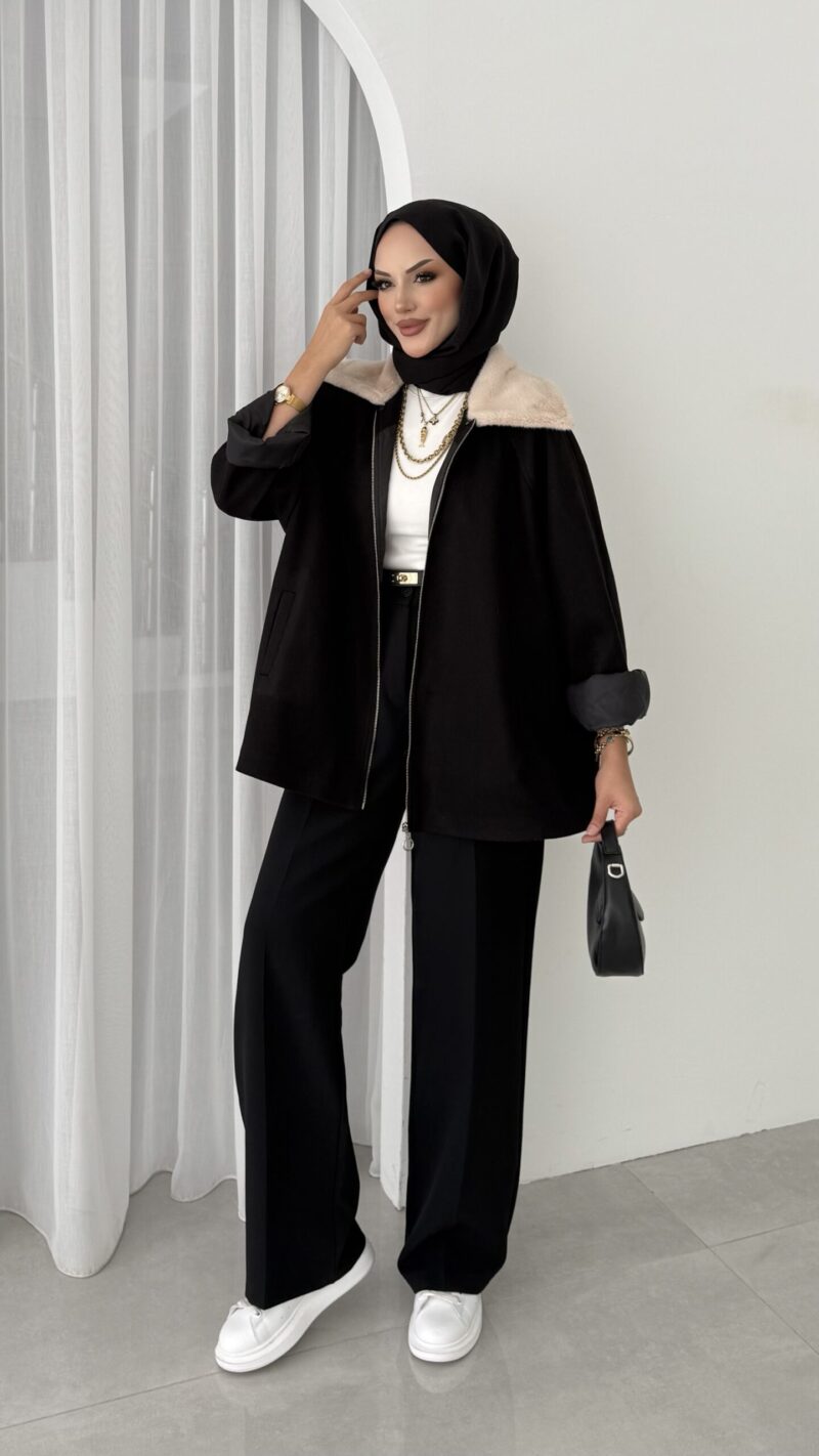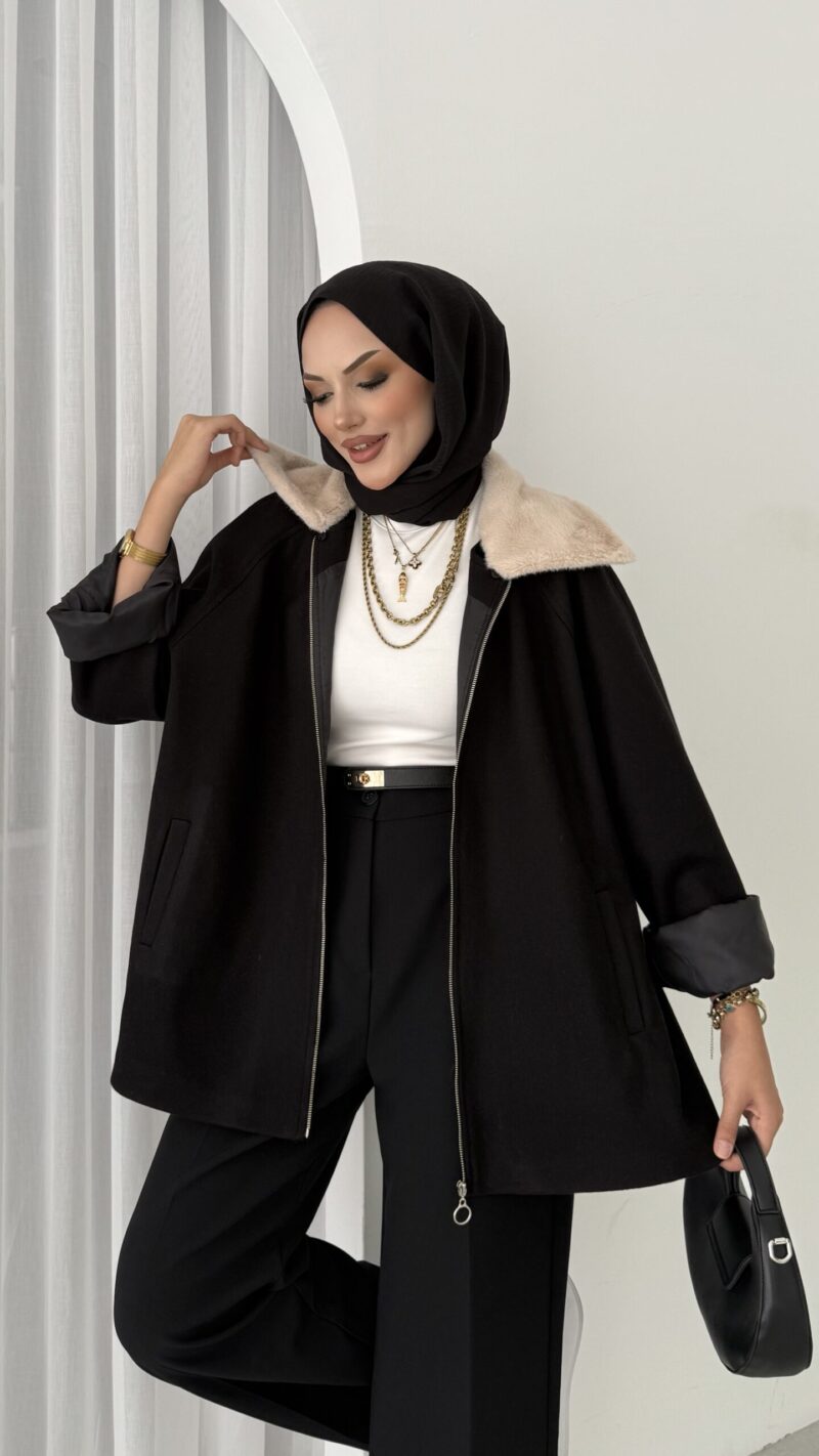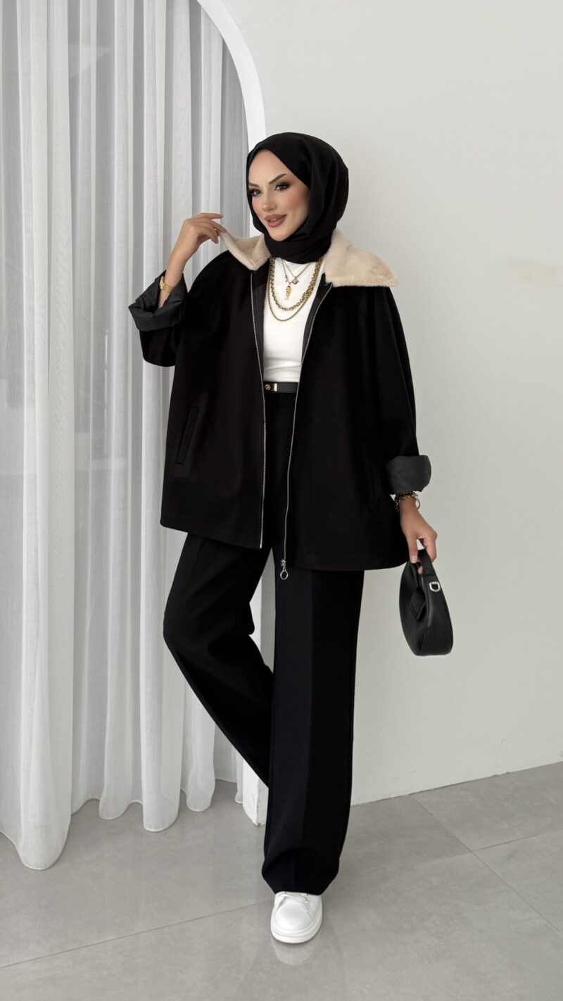 Muadil Kürk Yaka Kaşe Ceket – Siyah