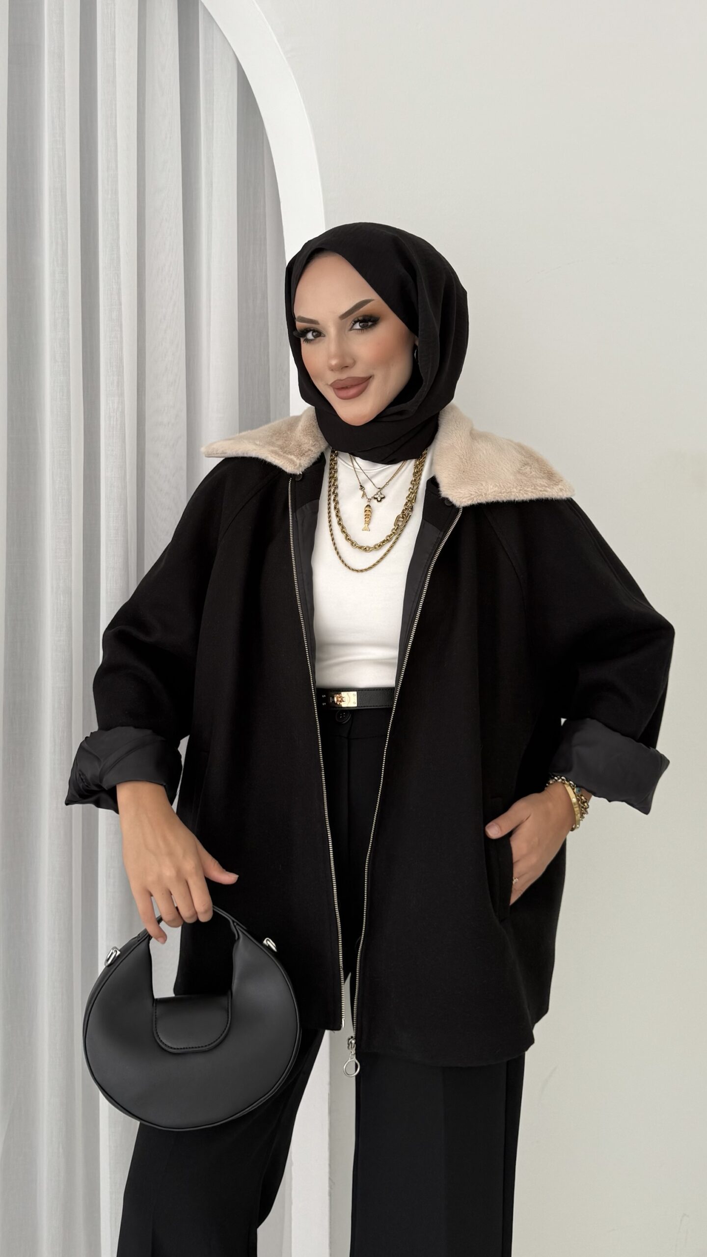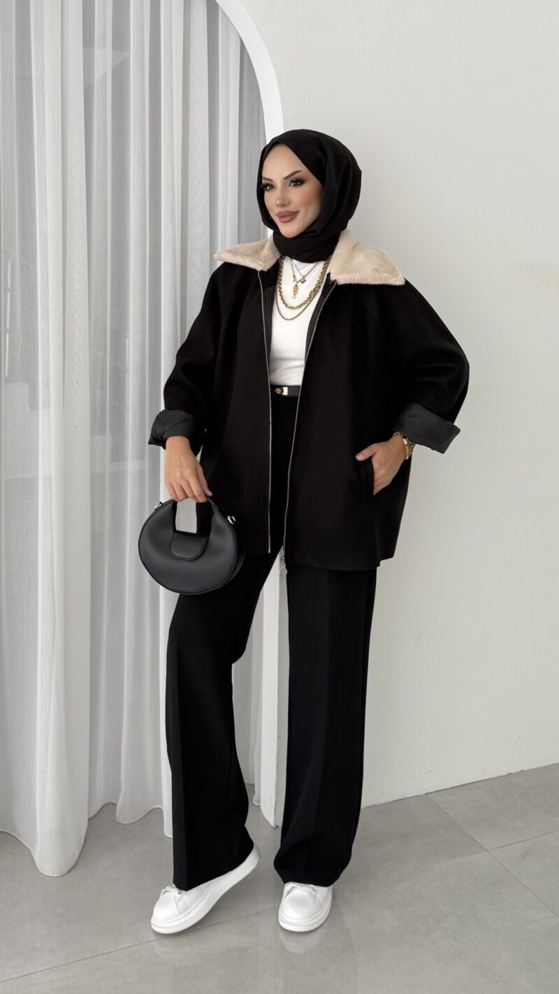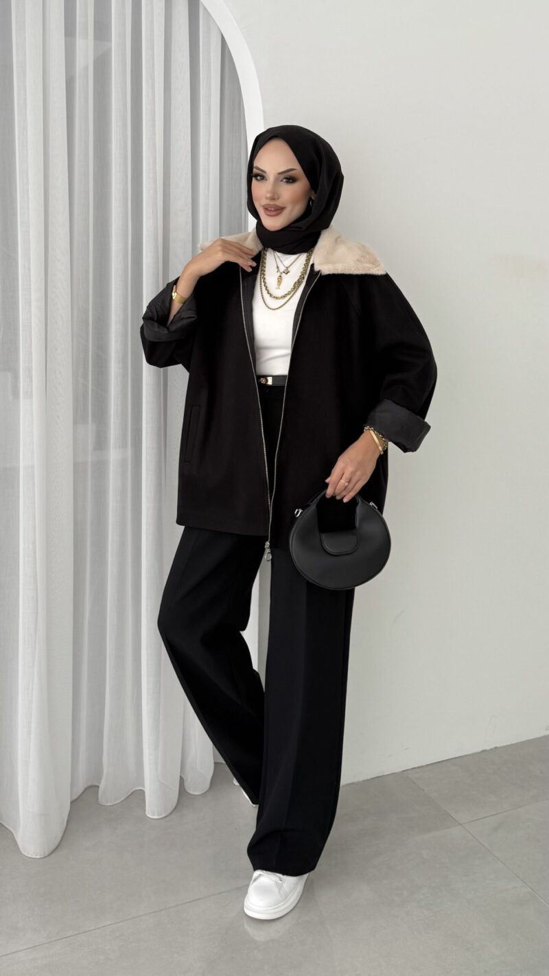 Muadil Kürk Yaka Kaşe Ceket – Siyah