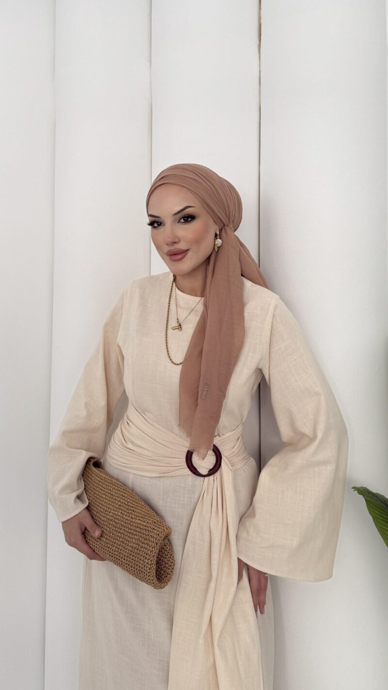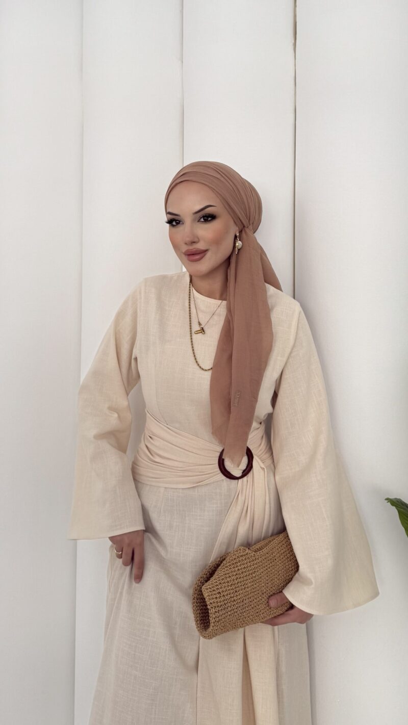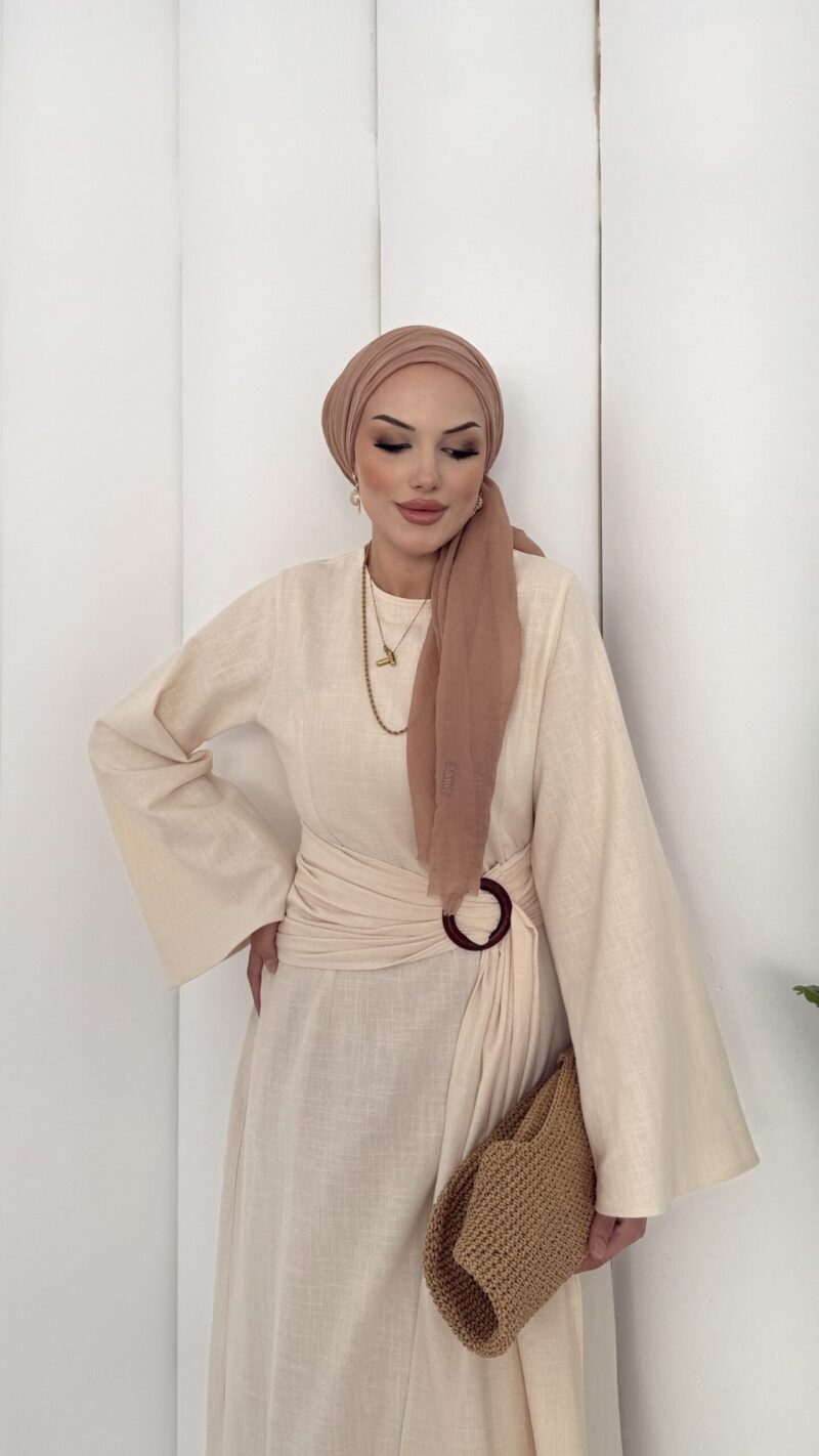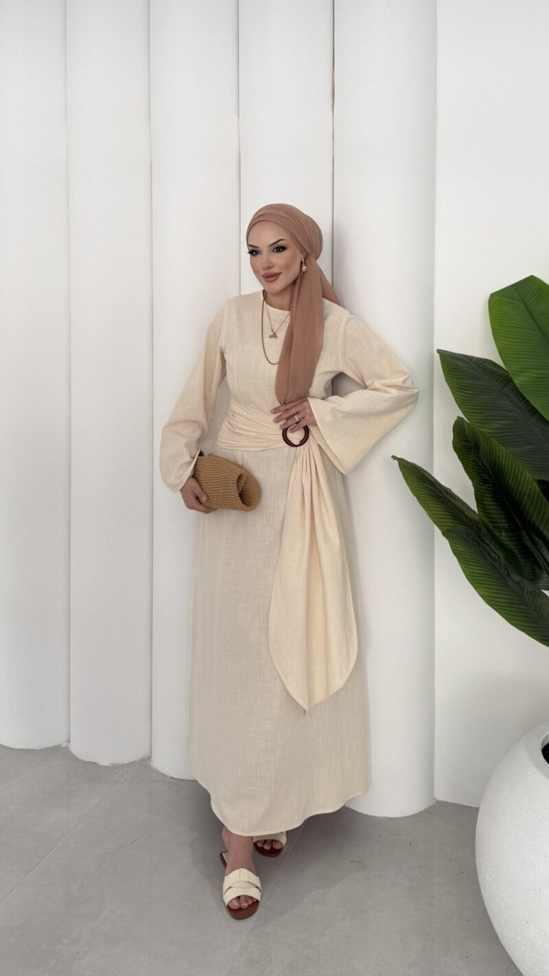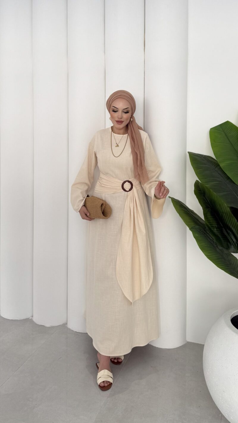 Ana Sayfa ELBİSE Pinterest Toka Detaylı Keten Elbise – Bej