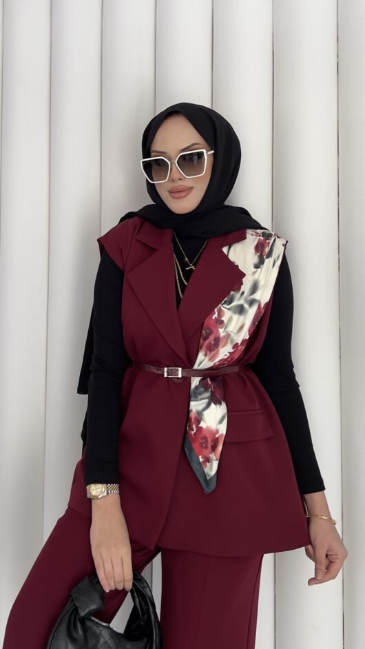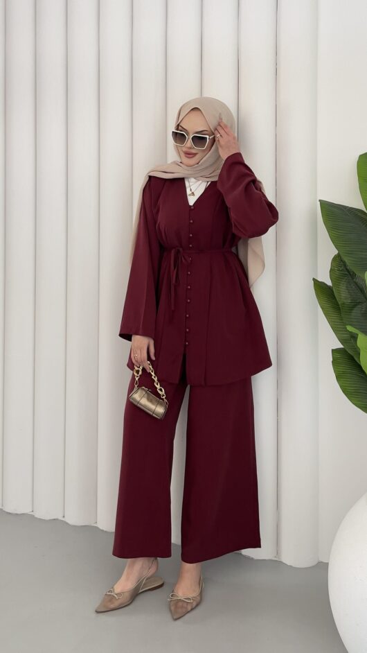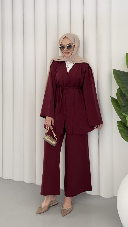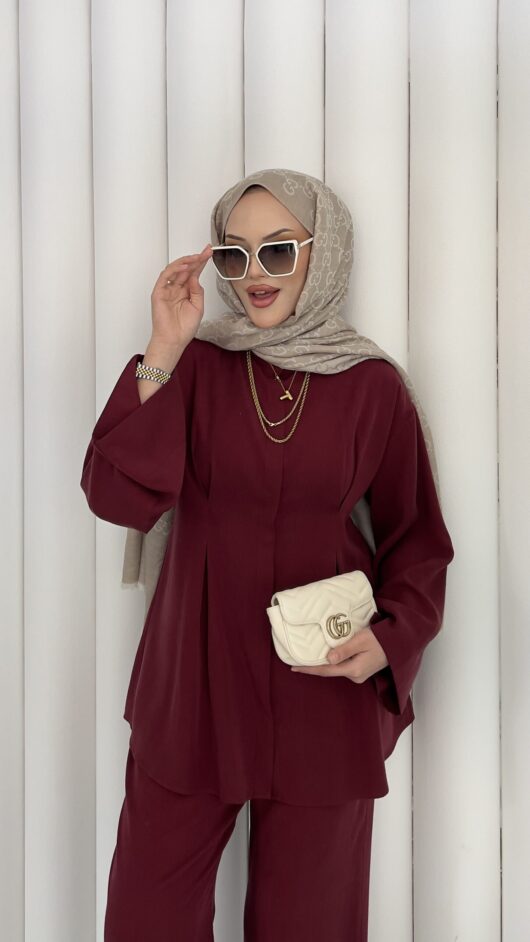 Pinterest Toka Detaylı Keten Elbise – Bordo