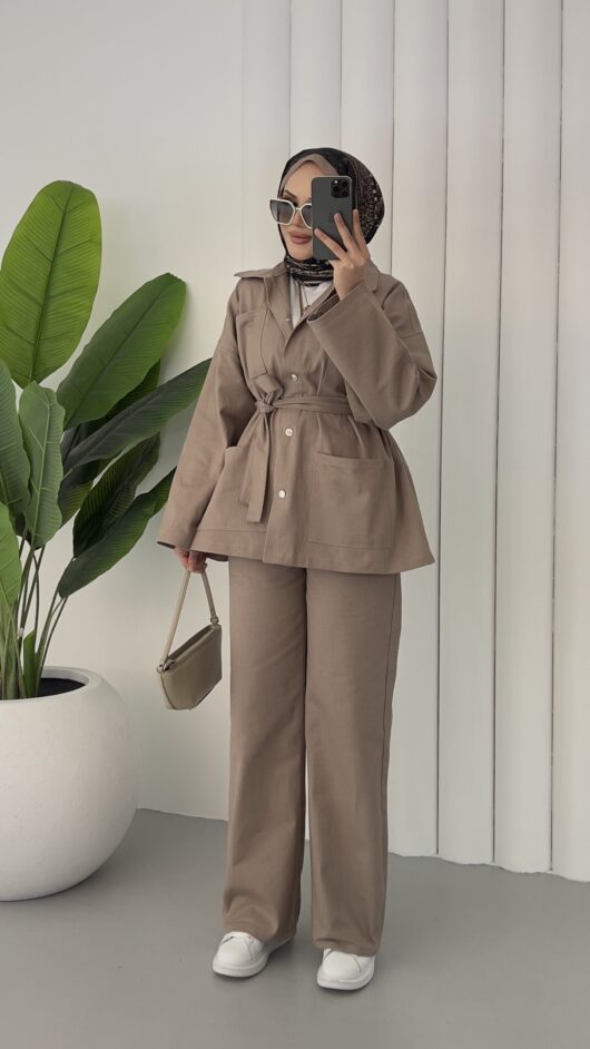 Pinterest Toka Detaylı Keten Elbise – Bej