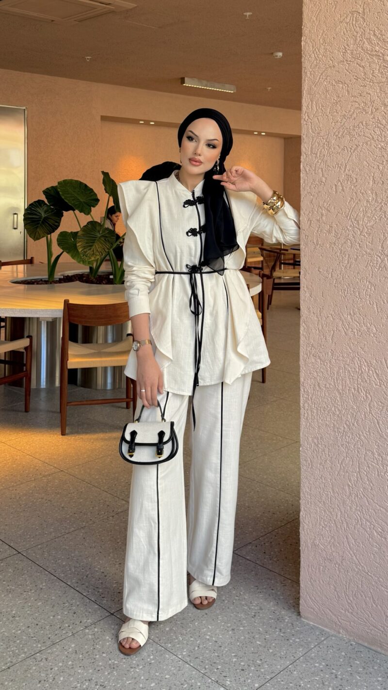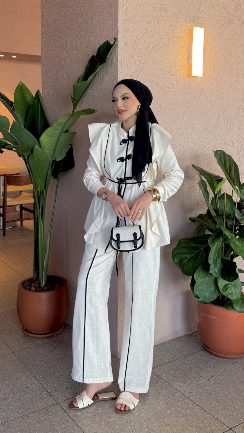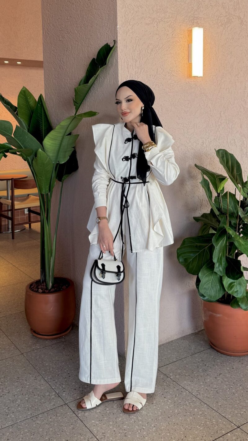 Roma Premium Çizgili Keten İkili Takım – Bordo