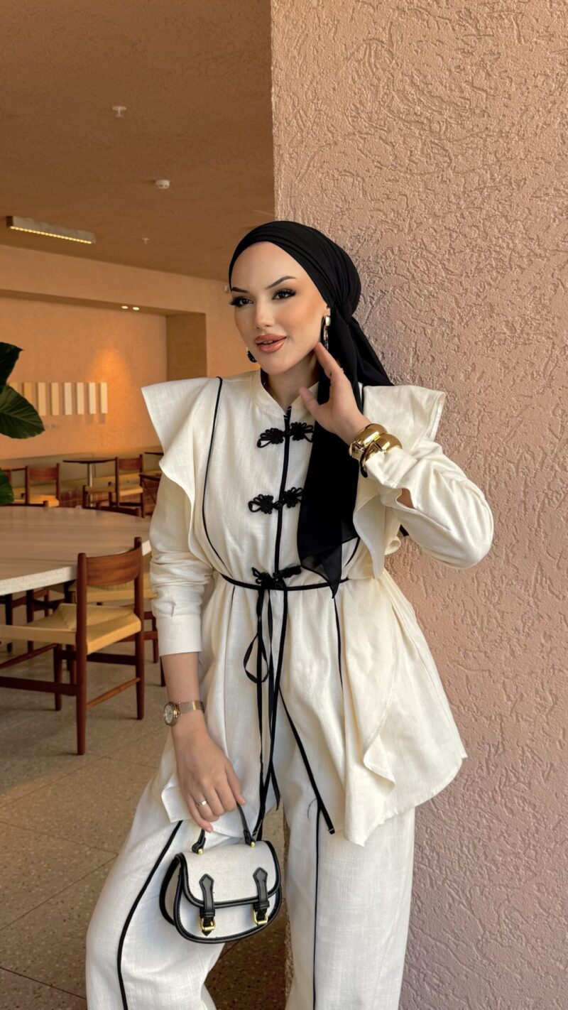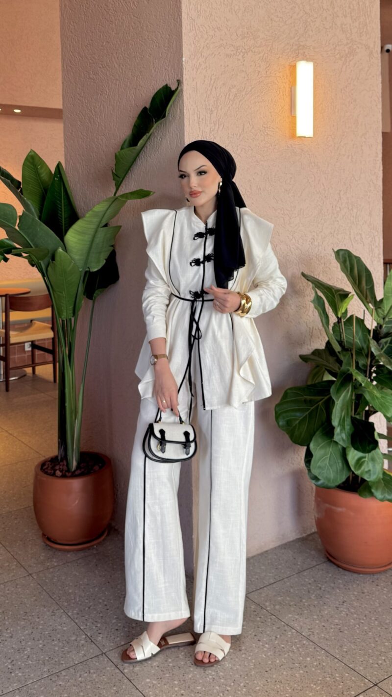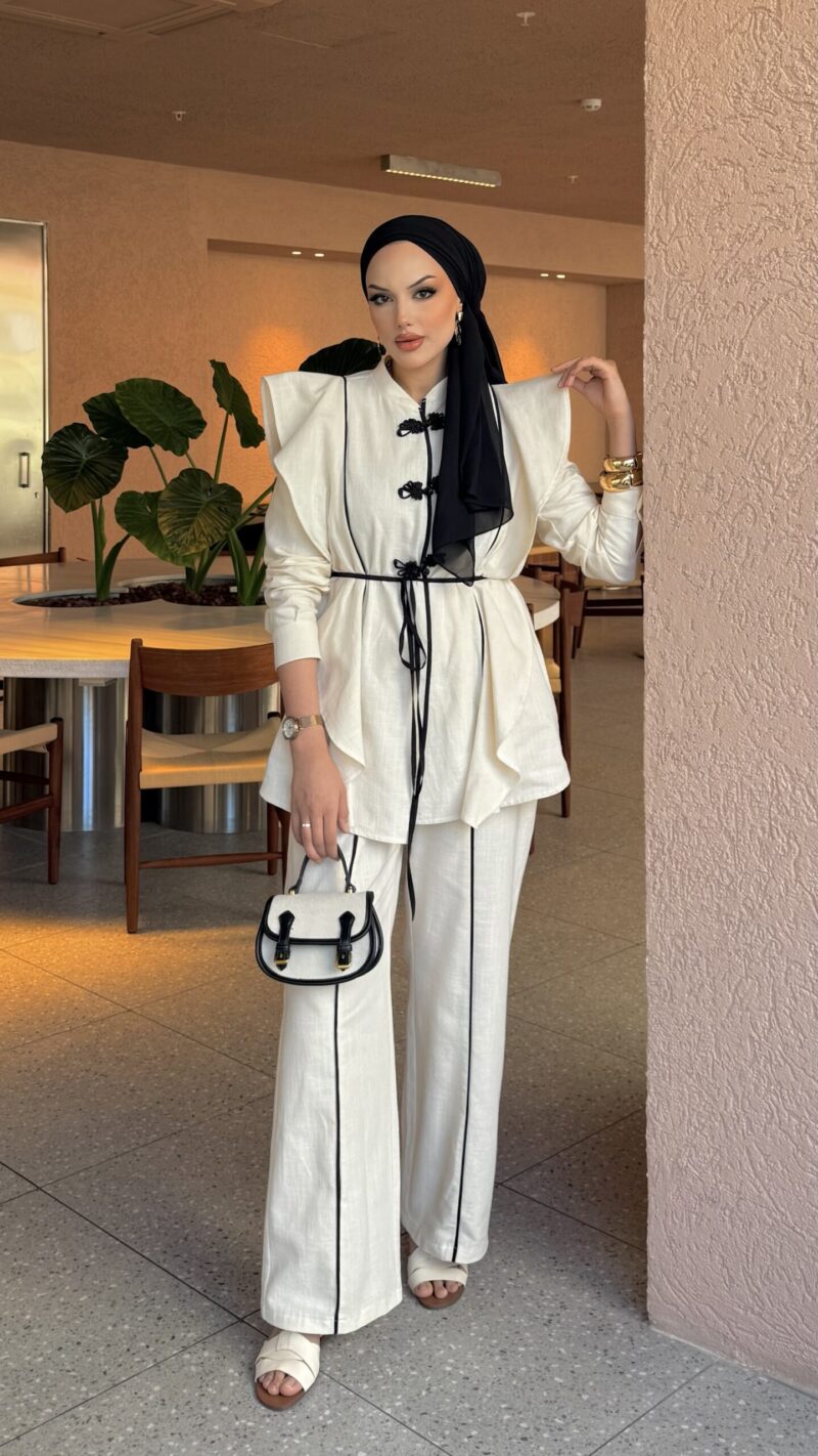 Roma Premium Çizgili Keten İkili Takım – Bordo